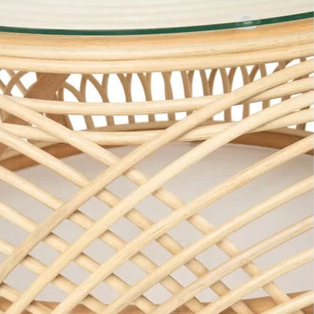 Nature Wood Glass Coffee Tables Rattan Leisure with 4 Drawers