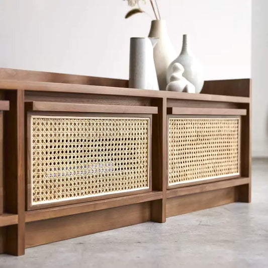 Izzy Curved Rattan 150cm TV Unit, Walnut