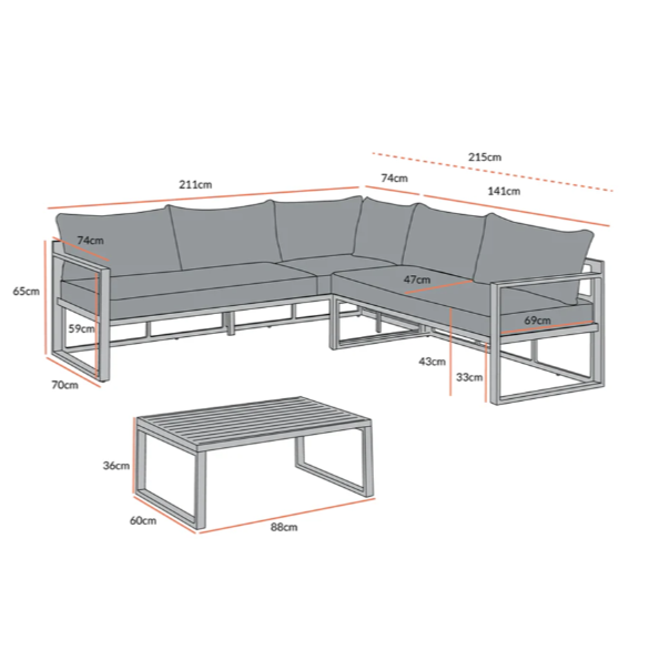 Transform your outdoor space with the stylish and versatile Albany Aluminium Corner Sofa Set. Perfect for entertaining, this set comfortably seats 5 people and features a sleek aluminium frame and plush cushions. The coffee table adds functionality, while the reclining backrest allows for ultimate relaxation. Durable and weather-resistant, this set is designed to last. Available in chic taupe with a matte black frame.