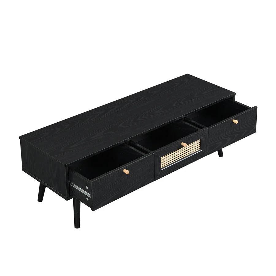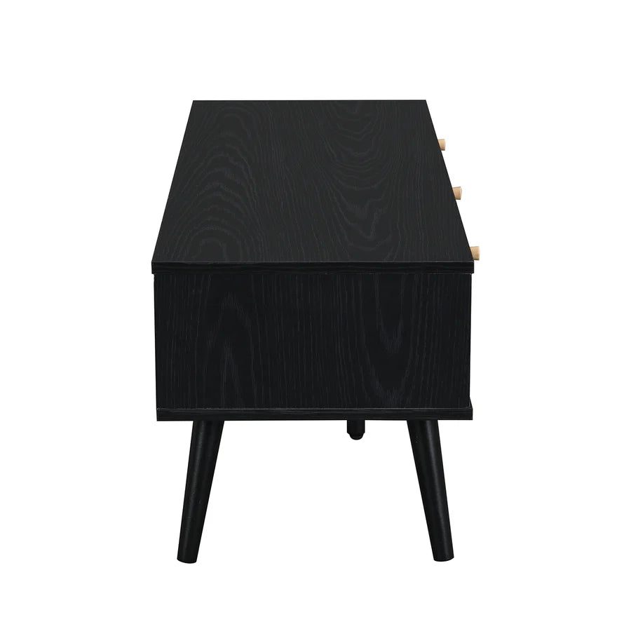 Anya Woven Rattan 3-Drawer TV Unit in Black