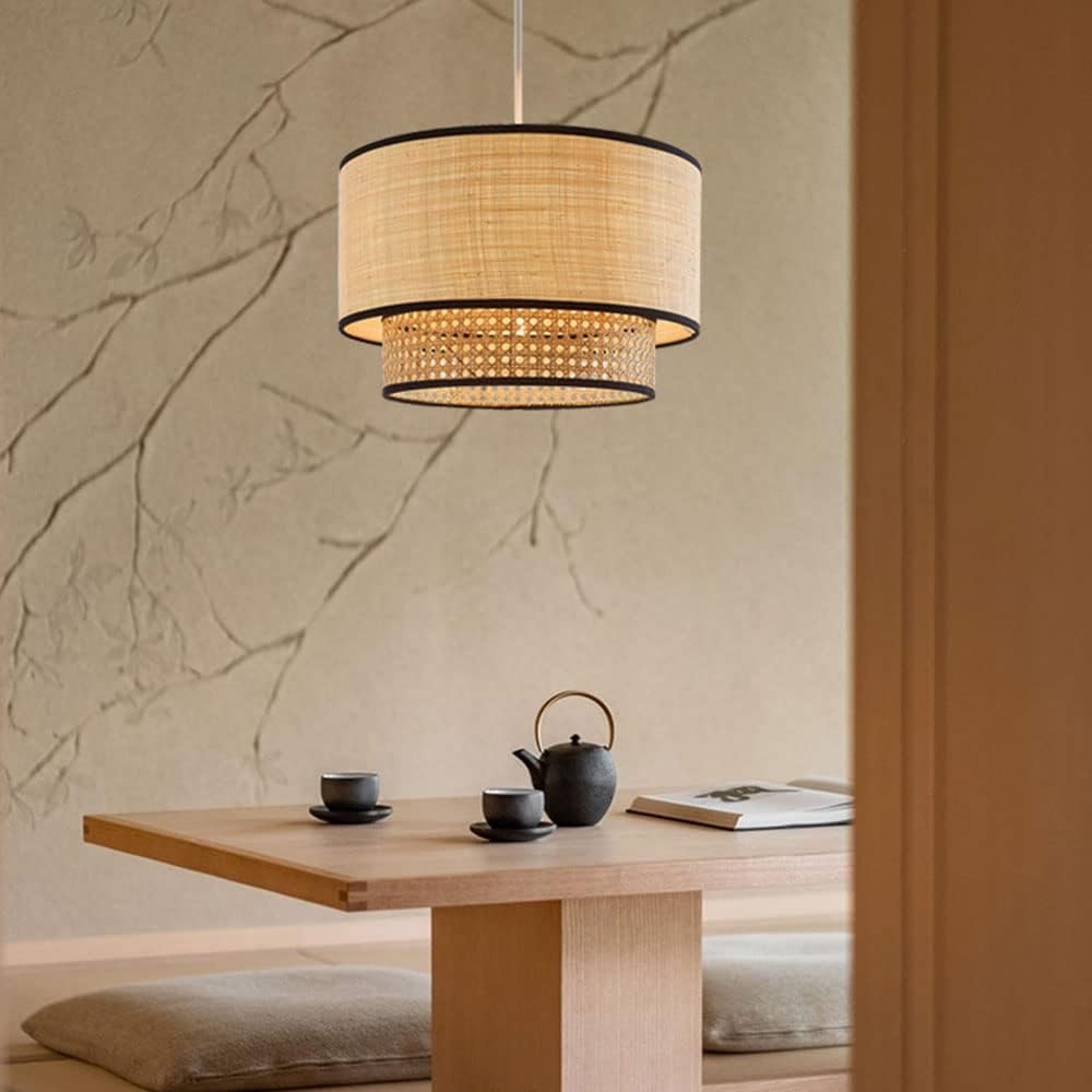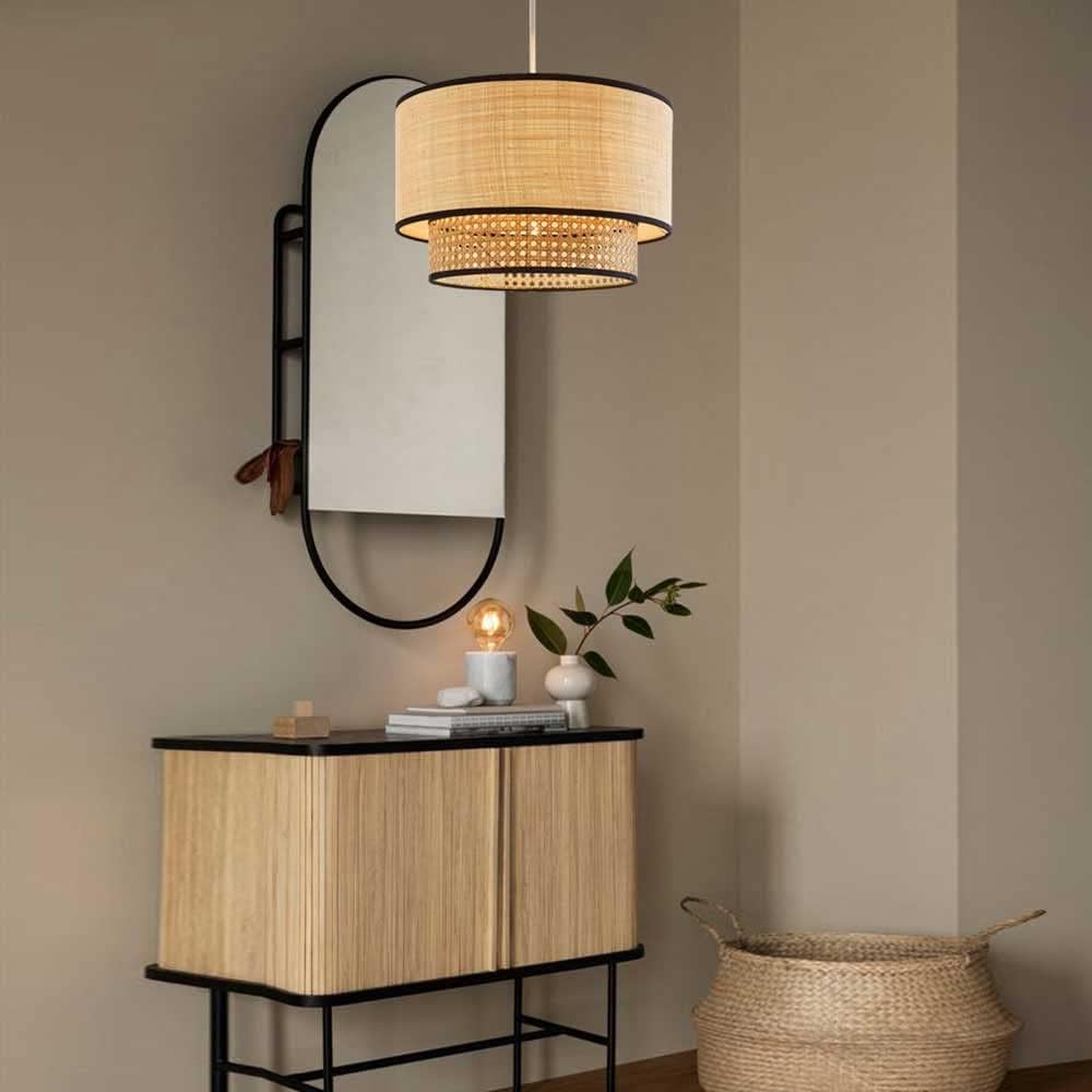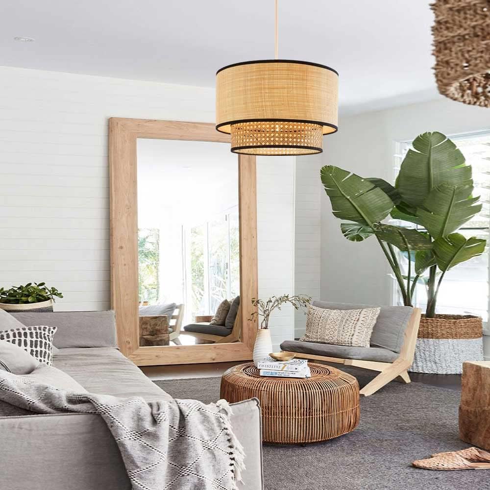 Artisanal Boho Rattan Light Fixture