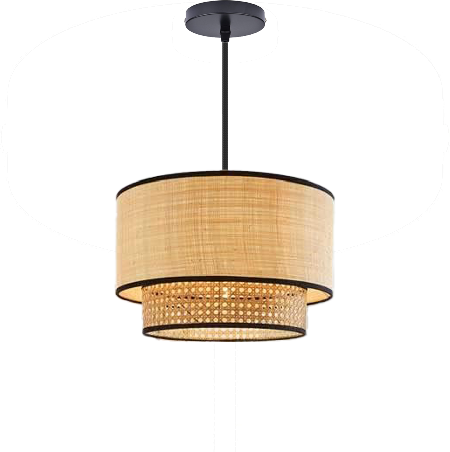 modern ceiling lamp. Made of Steel supported fabrics&rattan with black elictrostatic painting , It includes 4 sockets, but without lamps.
