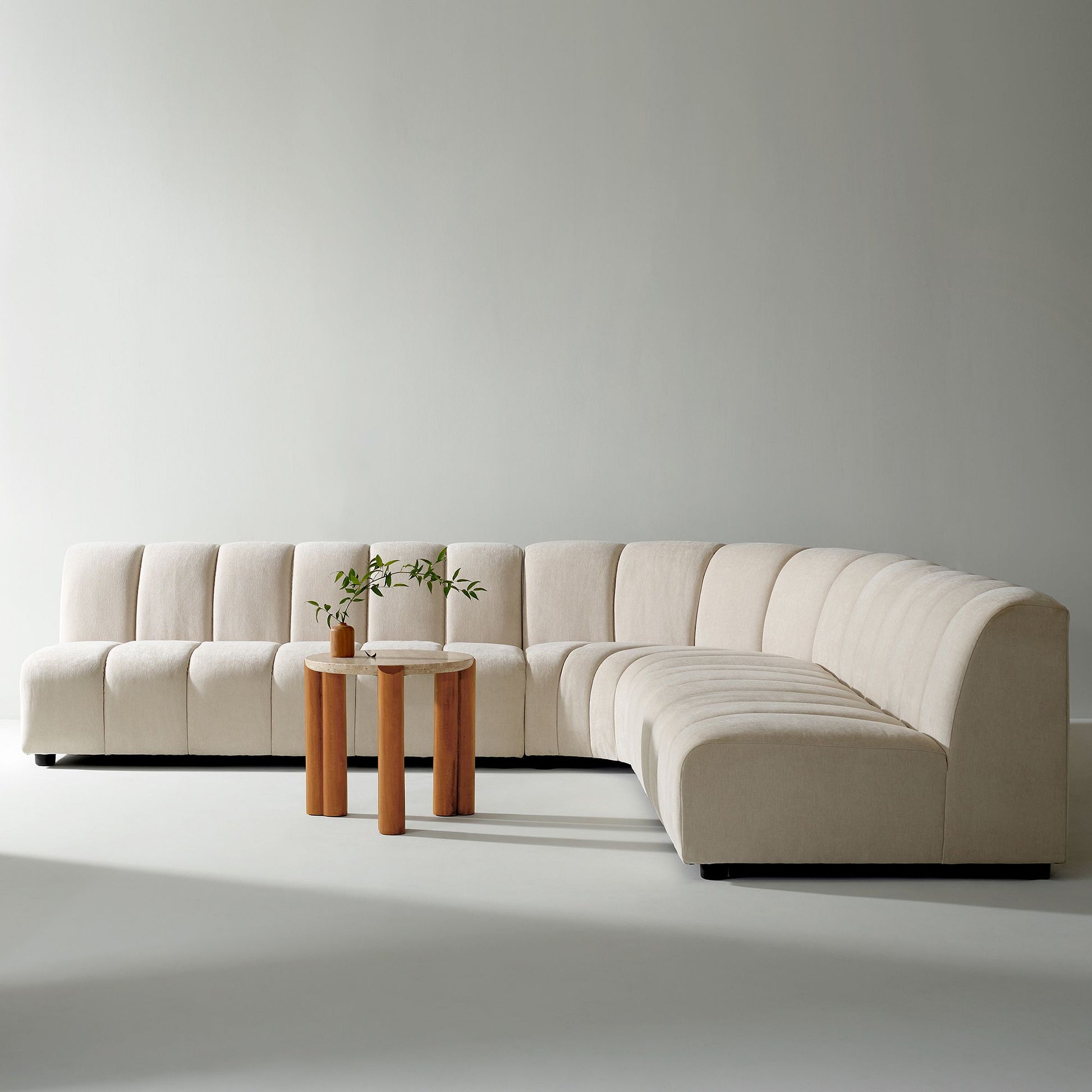Experience the ultimate comfort and style with our Avalon L shape sofa! This sectional includes 2 armless doubles and 1 curved wedge, providing ample seating for you and your guests. Made with a solid and engineered wood frame, this sofa is built to last for years to come. Transform your living space with the luxurious Avalon L shape sofa.