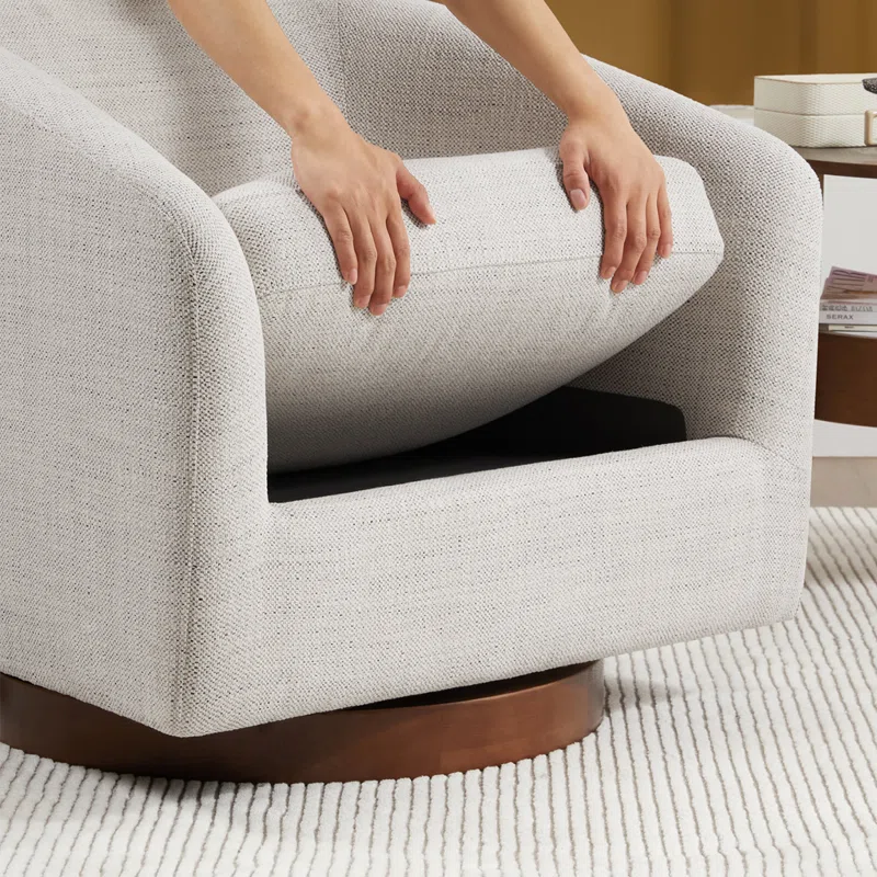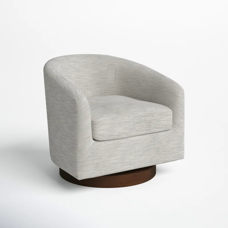 Welcome home the Bennett armchair, a perfect combination of comfort and style. Its swivel base allows for easy mobility while its durable upholstery comes in a variety of hues and fabrics to match any aesthetic. this chair is ready to transform your space.