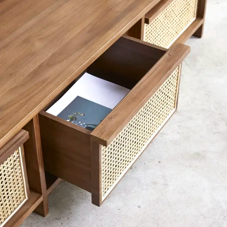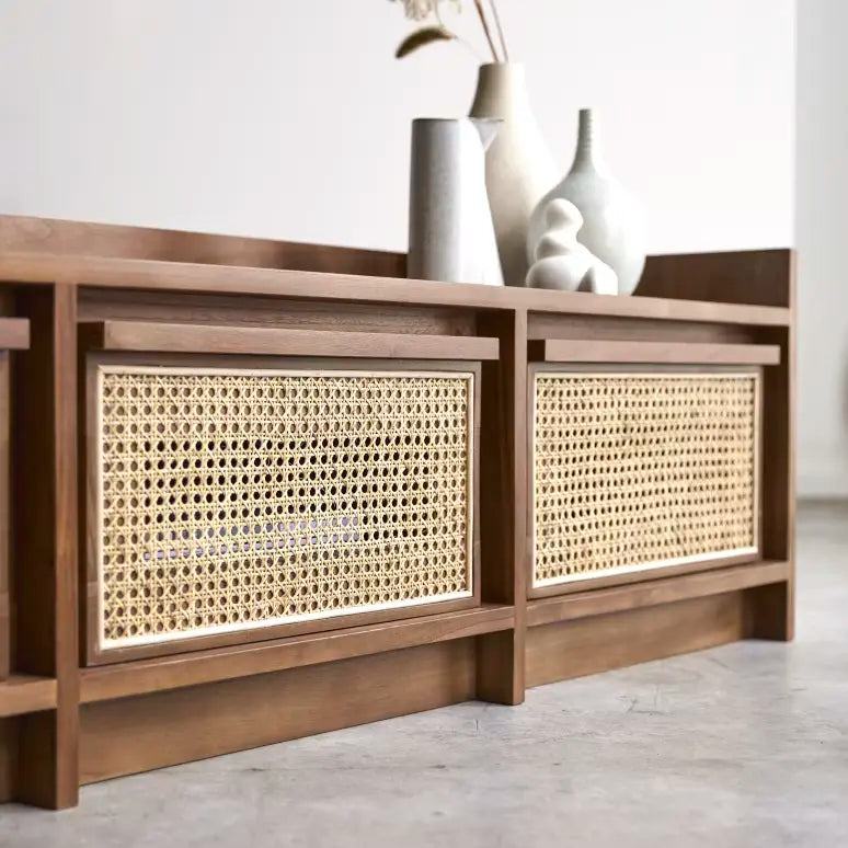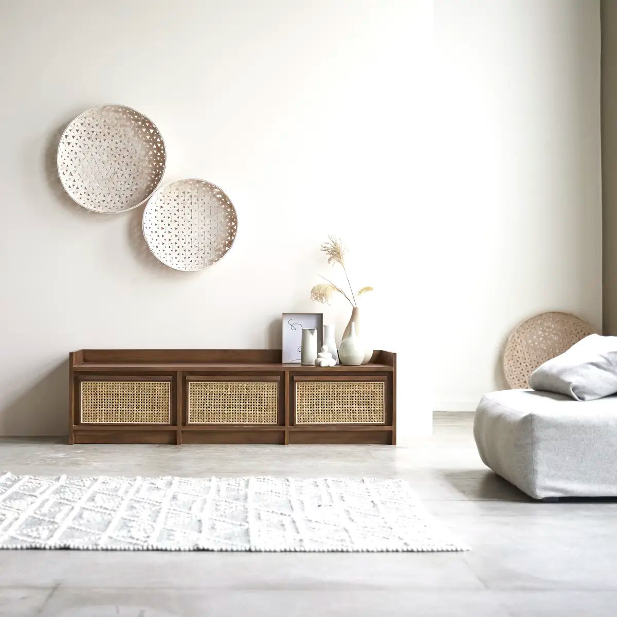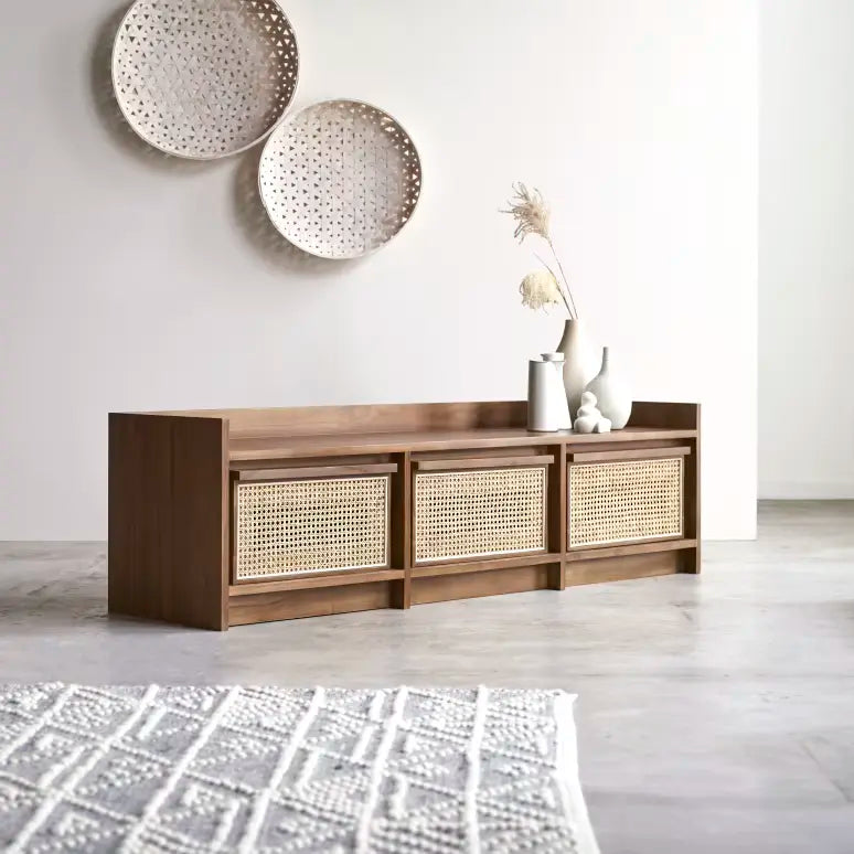 Expertly crafted from natural wood and cane, the CaneFusion TV table offers a stylish and eco-friendly solution for your living room. With dimensions of 160cm x 40cm x 50cm, it is the perfect addition to any modern home. Enjoy the benefits of a sturdy and elegant TV table while reducing your carbon footprint.