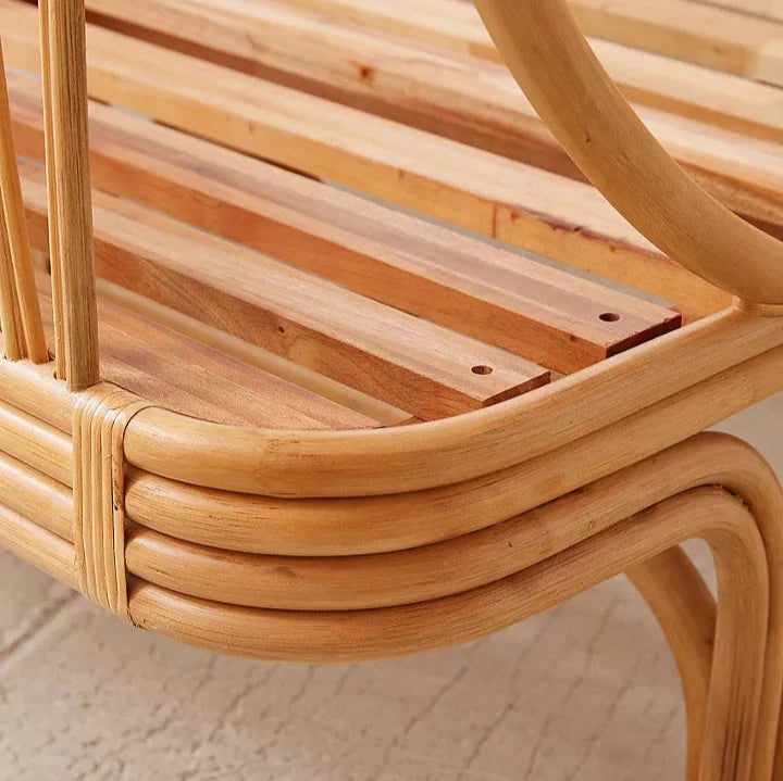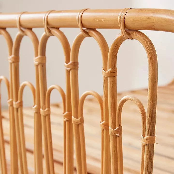 Transform your bedroom into a natural sanctuary with our Canoga Double Rattan Bed. Crafted from durable rattan, this bed boasts an exquisite design with cage detailing and a slatted base. Experience a restful night's sleep while adding a touch of nature to your space.
