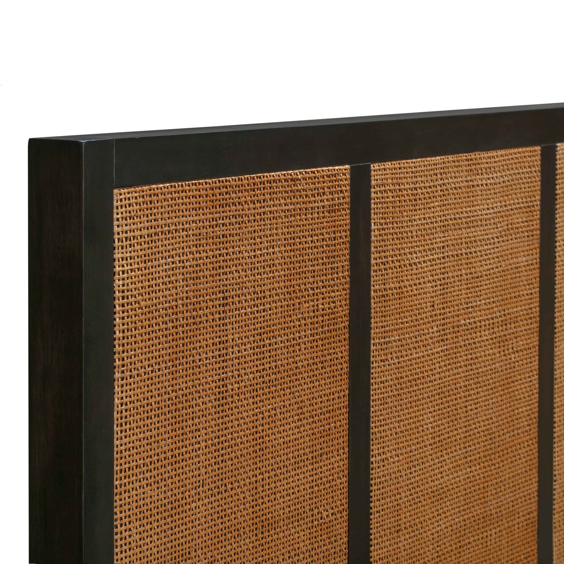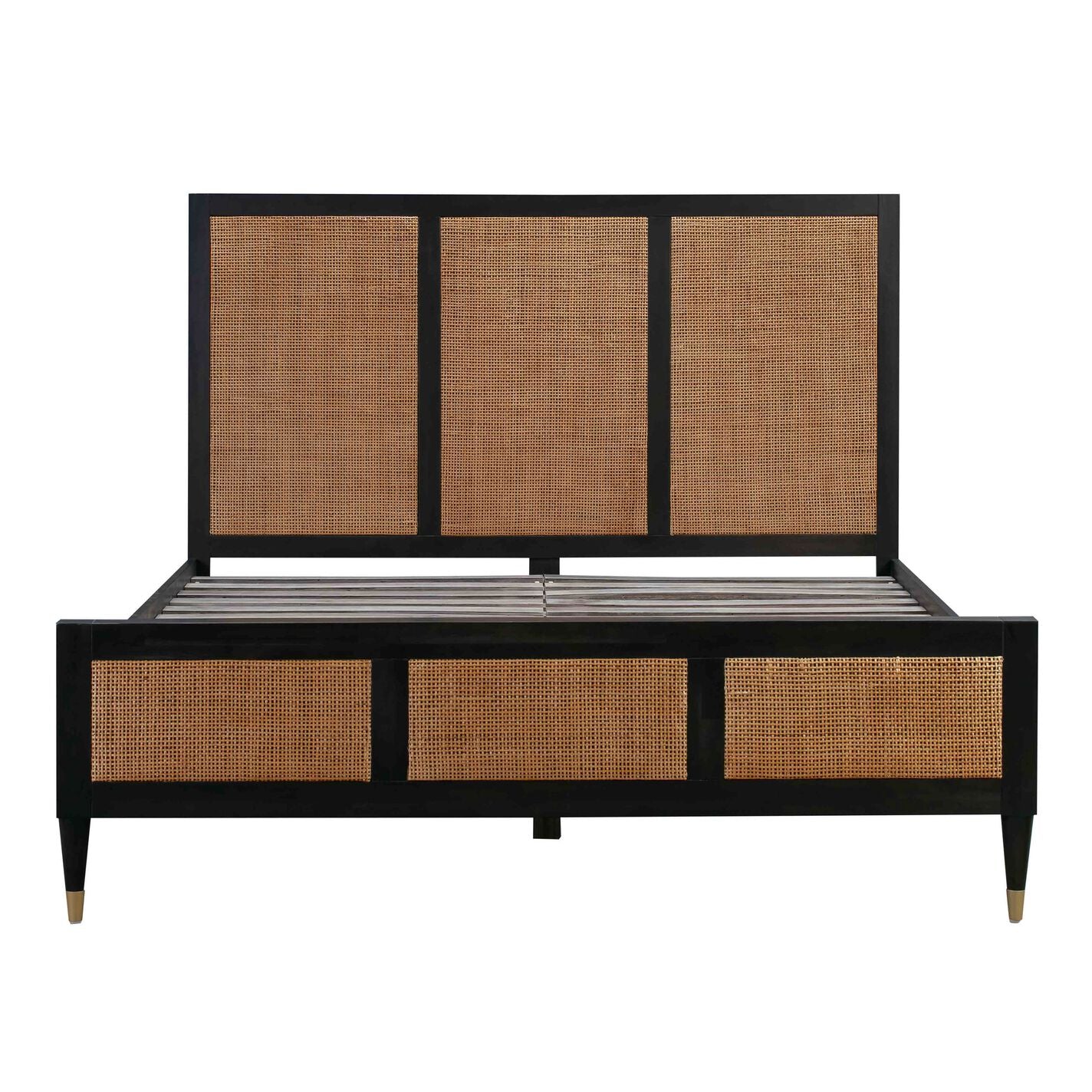 Transform your bedroom into a luxurious, tropical oasis with the Chrisney platform bed. Handcrafted by skilled artisans, it features contrasting panels of black wood and natural cane for an elegant, island-inspired look. With metal wheels on the front legs, this bed exudes a sophisticated, Singapore Ritz vibe.