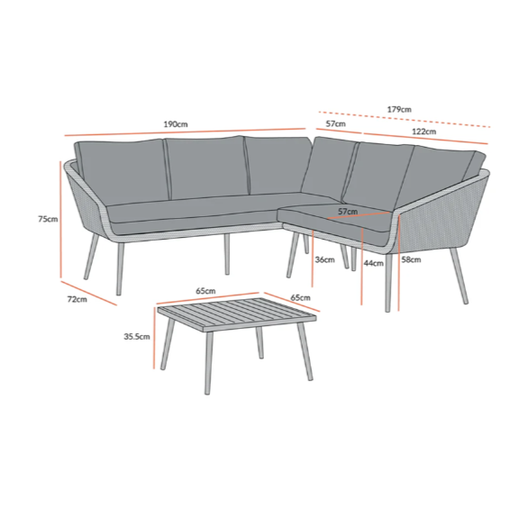 - Dimensions: L 190 x W 194 x H 75 cm.