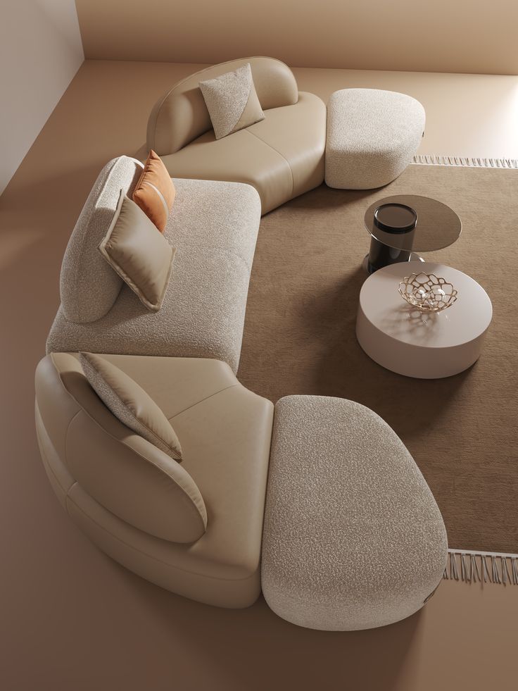 Elevate your living space with our elegant Curved Sofa. Handcrafted with natural wood for added comfort, this sofa boasts a sophisticated design and durable leather and linen materials. Get cozy on this comfy and stylish piece, perfect for any home.