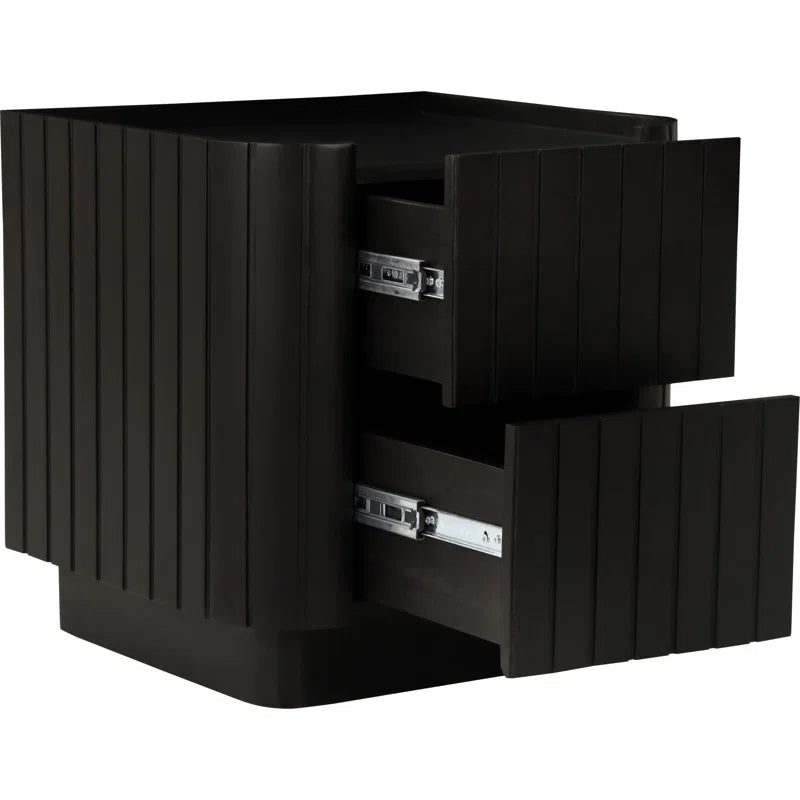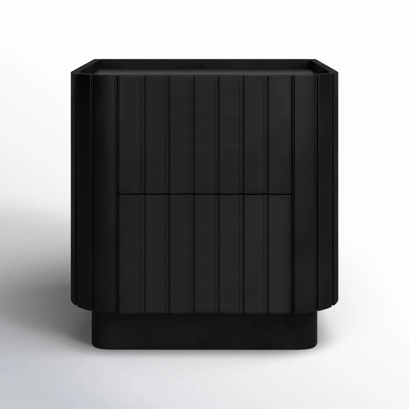 Enhance your bedroom with the Daley 2-Drawer Nightstand. Featuring an Acacia façade with gentle ribbing, this nightstand adds texture and warmth to your space. Enjoy ample storage and soft close drawers for convenience. The unique design and quality craftsmanship make this a standout piece in any room.
