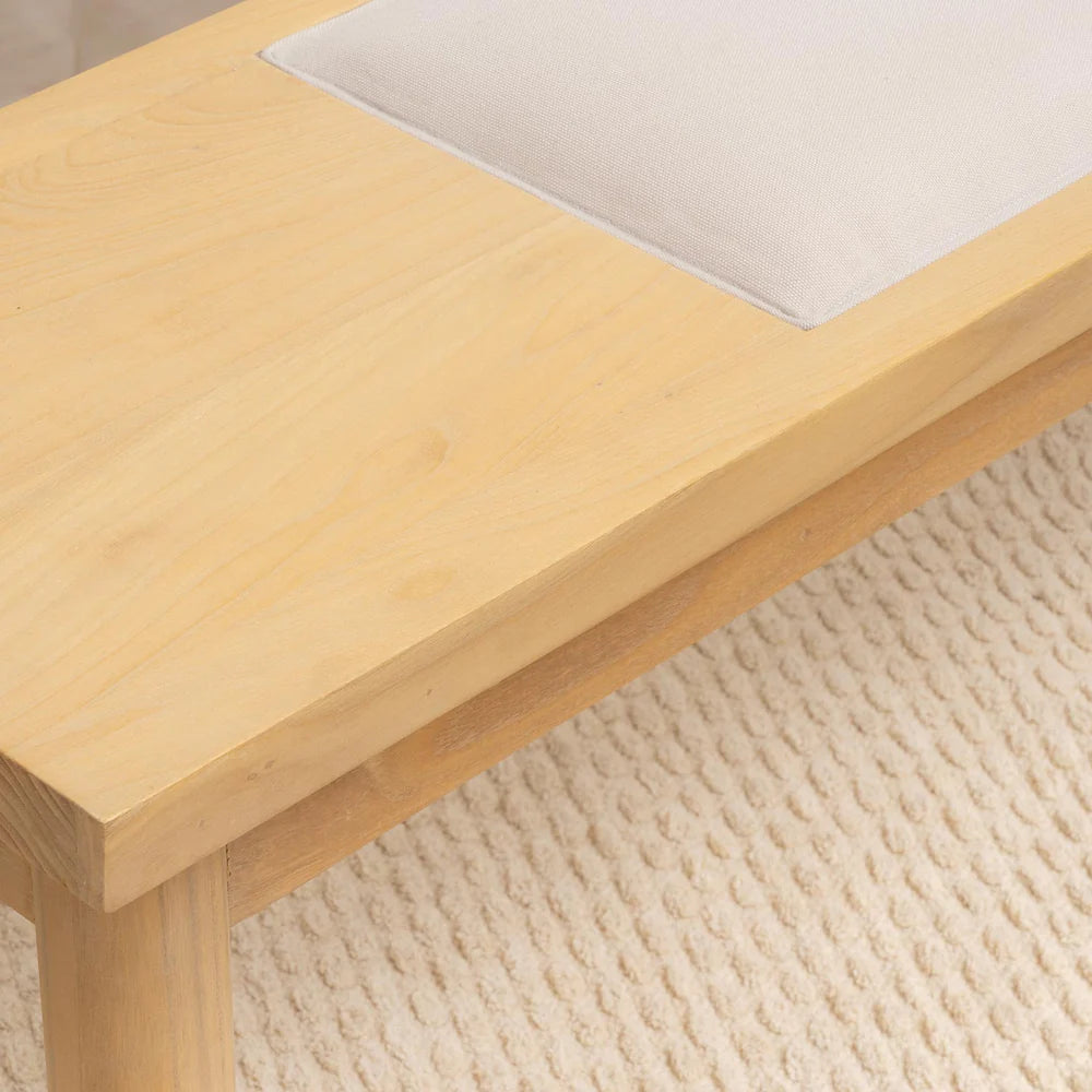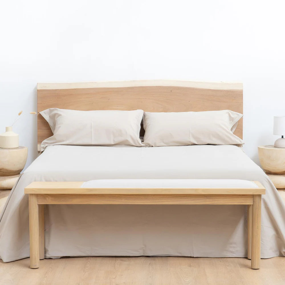 Elevate your home with the DANE BANQUET stool. ecru polyester fabric, this Boho-inspired piece adds warmth and minimalism to any space. Enjoy its sleek design and cozy feel.