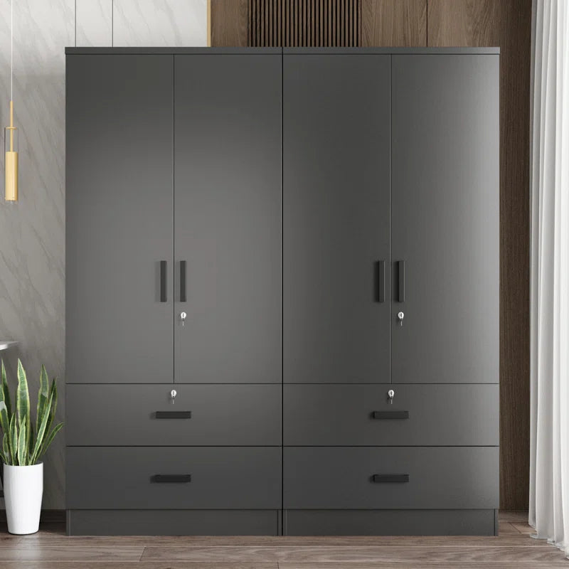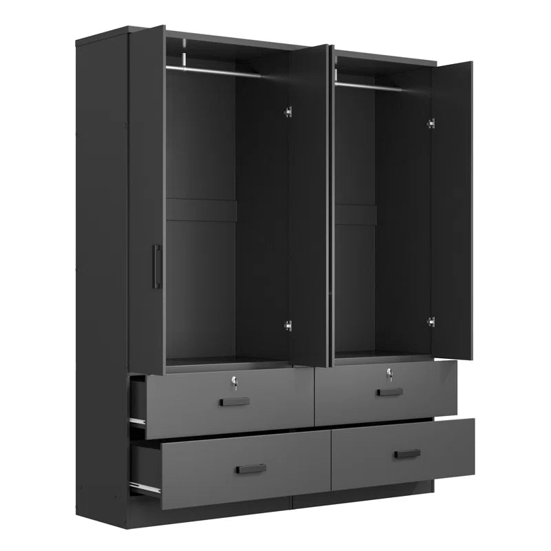 Transform your living space with our Double Wardrobe - the ultimate storage solution! Featuring 4 slim doors and 4 spacious drawers, this wardrobe provides ample space for all your belongings. Say goodbye to clutter and hello to a sleek and organized home.