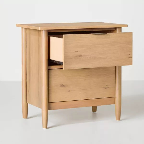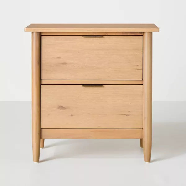 Elevate your bedroom with this 2-Drawer Modern Wood Nightstand from Hearth & Hand™ with Magnolia. Standing at 24 inches high, it offers ample storage space for bedside essentials, while the solid-color design complements any decor. With functionality and style, this nightstand is the perfect addition to any sleeping area.