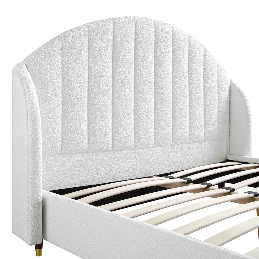 Eleanor White Boucle Upholstered Bed Frame with Domed Headboard