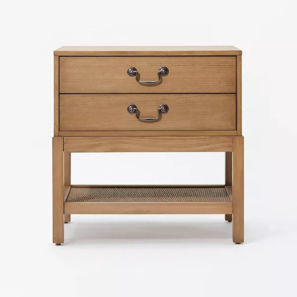 Experience function and style with the Elmira Nightstand from Threshold™ designed with Studio McGee. The brown wooden finish exudes sleekness while the spacious drawers and lower shelf provide ample storage. Perfect for a lamp, books, and more, this nightstand completes your bedroom with a cohesive look.