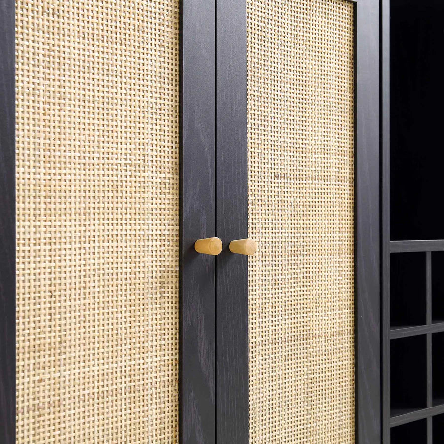 Unleash a warm, inviting feel in your home with our Frances Woven Rattan Drinks Cabinet. Made of natural rattan and wood, it offers both style and functionality. Show off your drinks and décor on the open shelves, while storing more in the cabinet. The hand-woven rattan door, complemented by a solid wood handle and legs, adds a natural touch.