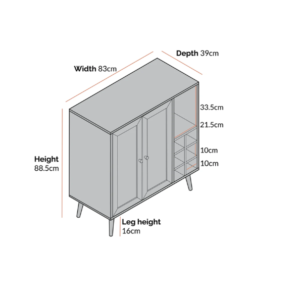 - Dimensions: W 83 x D 39 x H 88.5 cm.