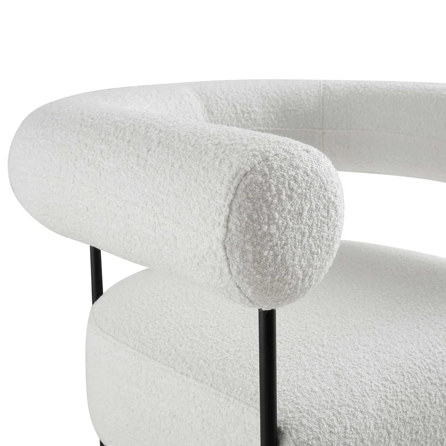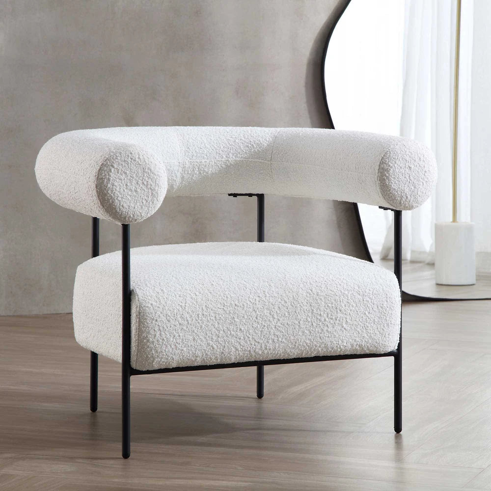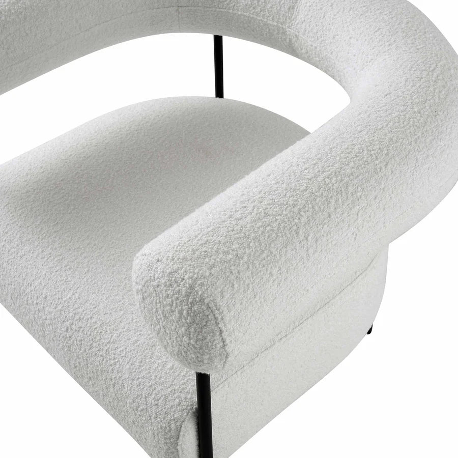 Introducing the Fulbourn White Boucle Armchair - the perfect blend of comfort and modern design! With ultra-slim black metal legs, a well-cushioned seat, and beautiful white boucle fabric, this chair is a statement piece for any room. Elevate your space and immerse yourself in luxury.