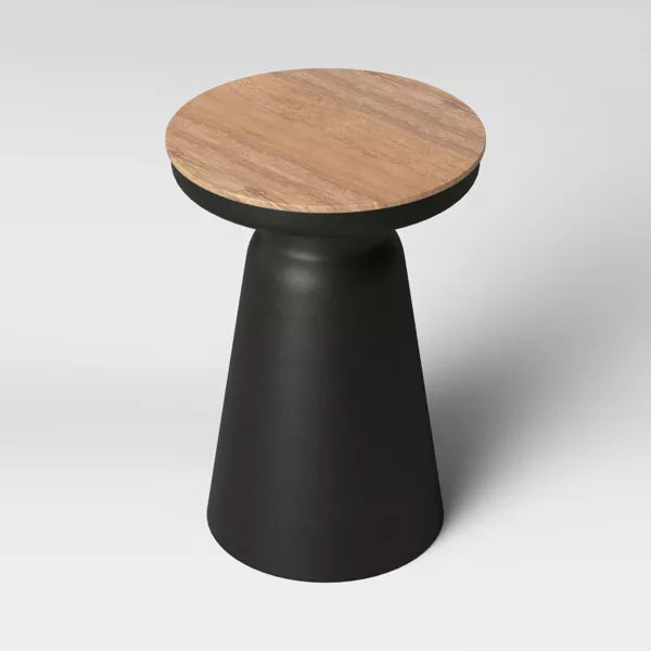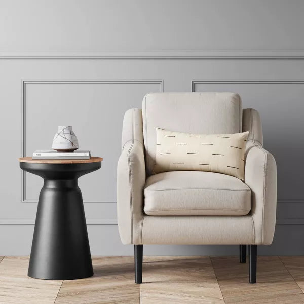 Experience chic sophistication with the Gino Turned Drum Accent Table Black from Threshold™. The sturdy black metal frame and wooden tabletop combine to create a cool, contemporary look. Use it to hold your favorite lamp or snacks while enjoying your reading nook. Add a touch of freshness with a potted plant or flowers.