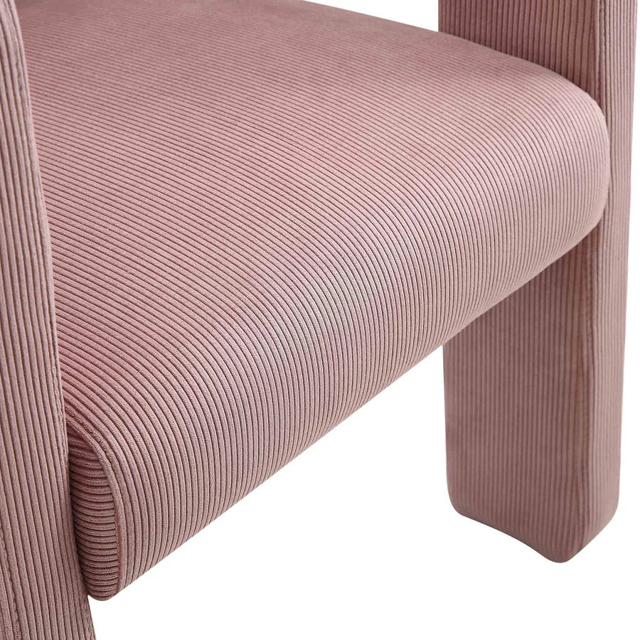 Elevate your dining or living space with our stunning Greenwich Dusty Pink Corduroy Dining Chair! Curved backrest and armrests, blocky legs, and a well-cushioned seat in lovely dusty pink corduroy fabric create an eye-catching design. Made with a hardwood internal frame for durability, this chair is perfect for any space - dining, accent, or even home office!
