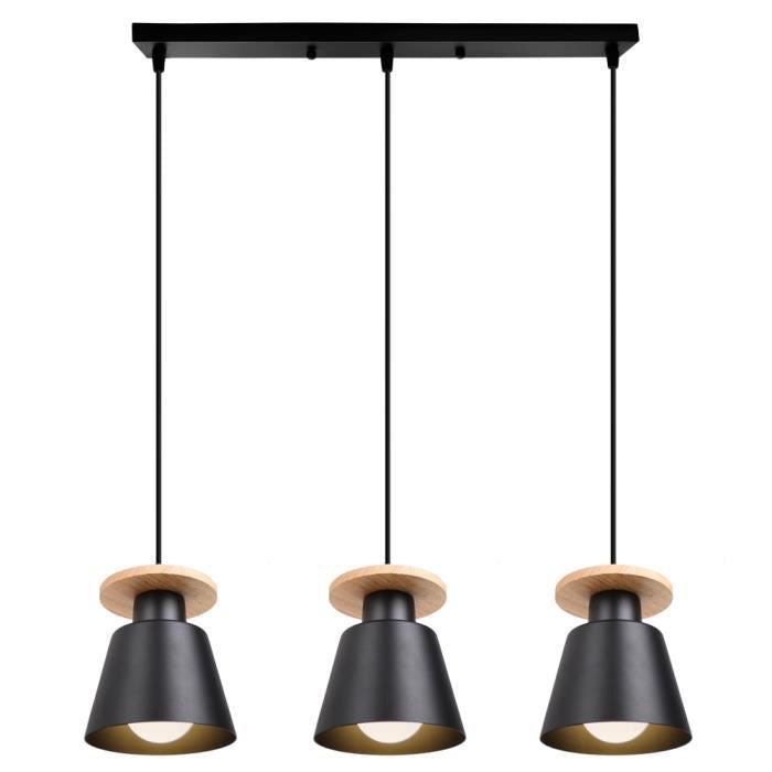 modern ceiling lamp. Made of Steel with black electrostatic painting, It includes 3 sockets without lamps Steel, Beech Wood, Steel, and Beech Wood black.