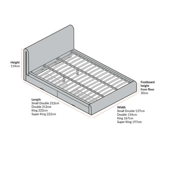 The Hampstead Taupe Boucle Curved Bed with 4-Drawer Storage combines modern design with practicality. Upholstered in textured boucle fabric, this bed makes a statement in any bedroom. The curved headboard and footend add elegance, while the 4 drawers provide discreet and convenient storage. With a sprung wooden slatted base and a sturdy internal frame, this bed offers both comfort and durability. Self-assembly required.