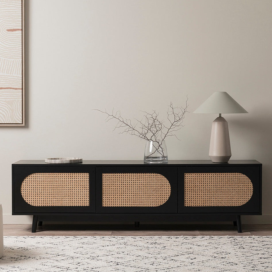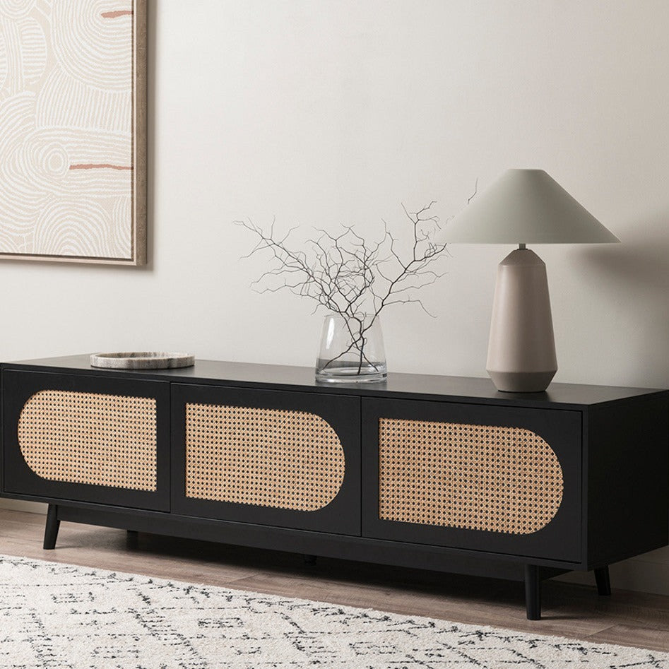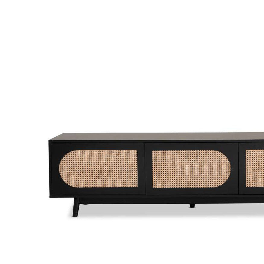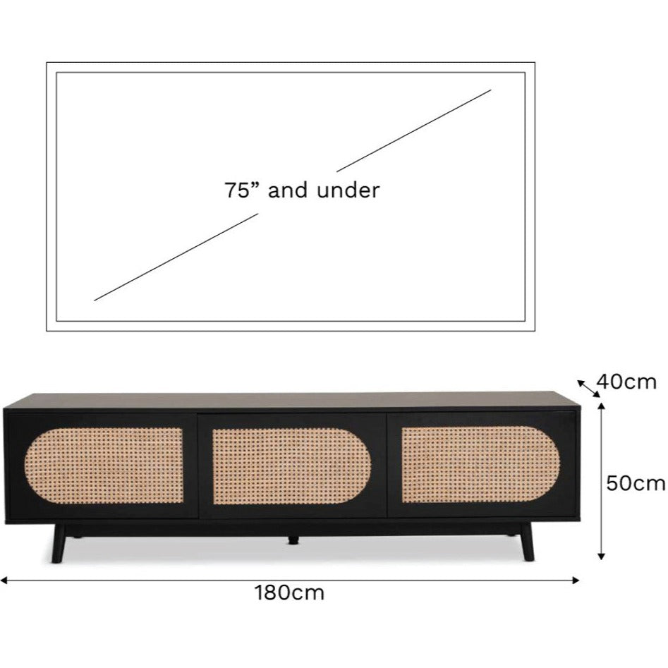 The exquisite design of this opulent TV unit gives your home entertainment a contemporary, bohemian feel. This large 180cm-long rattan entertainment unit is ideal for a media room or living room.