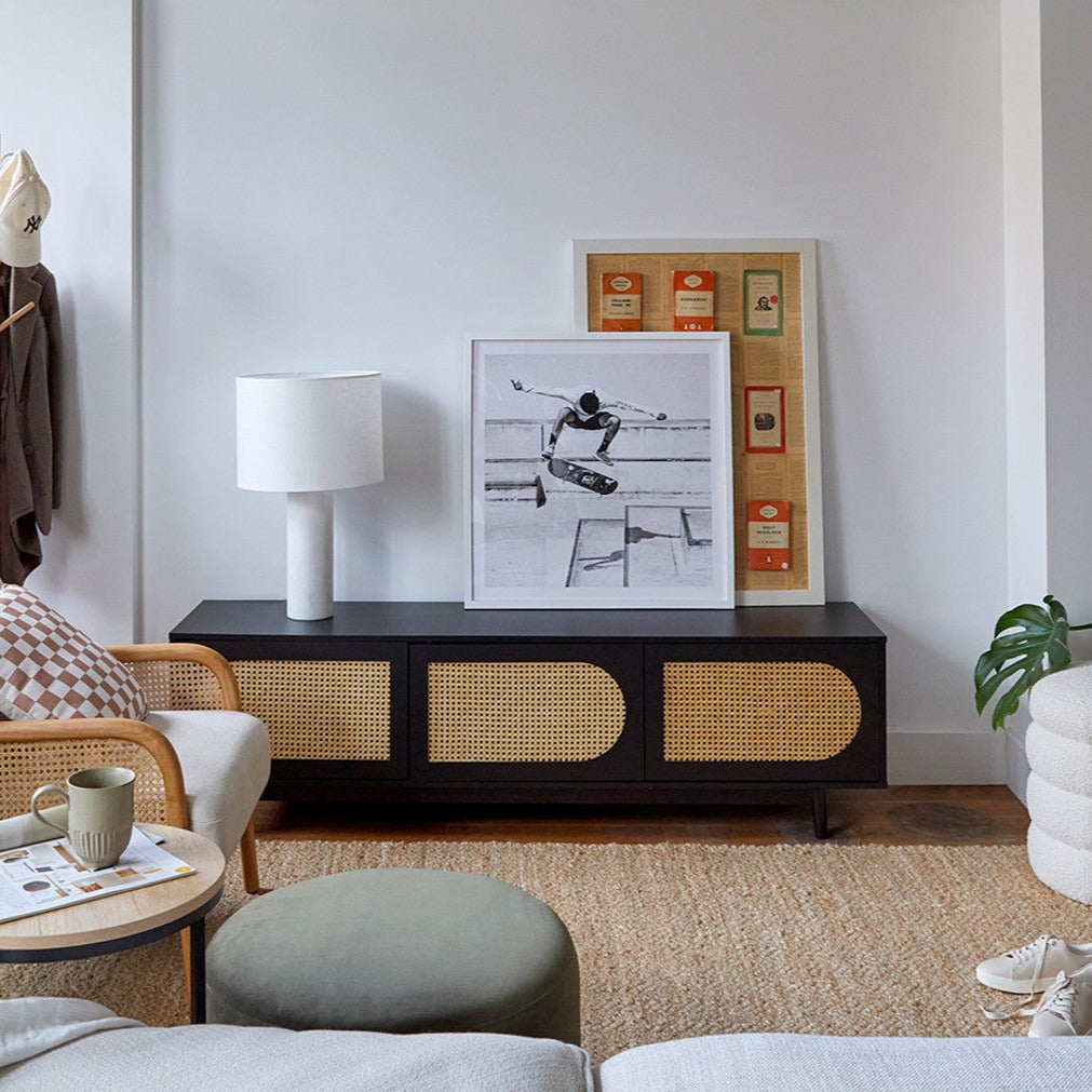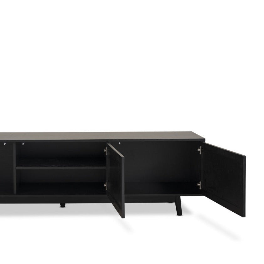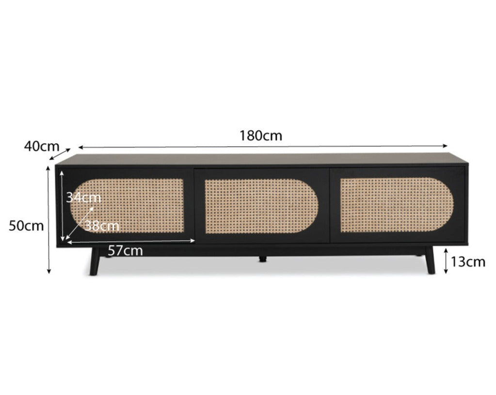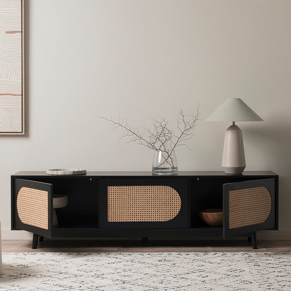 The exquisite design of this opulent TV unit gives your home entertainment a contemporary, bohemian feel. This large 180cm-long rattan entertainment unit is ideal for a media room or living room.