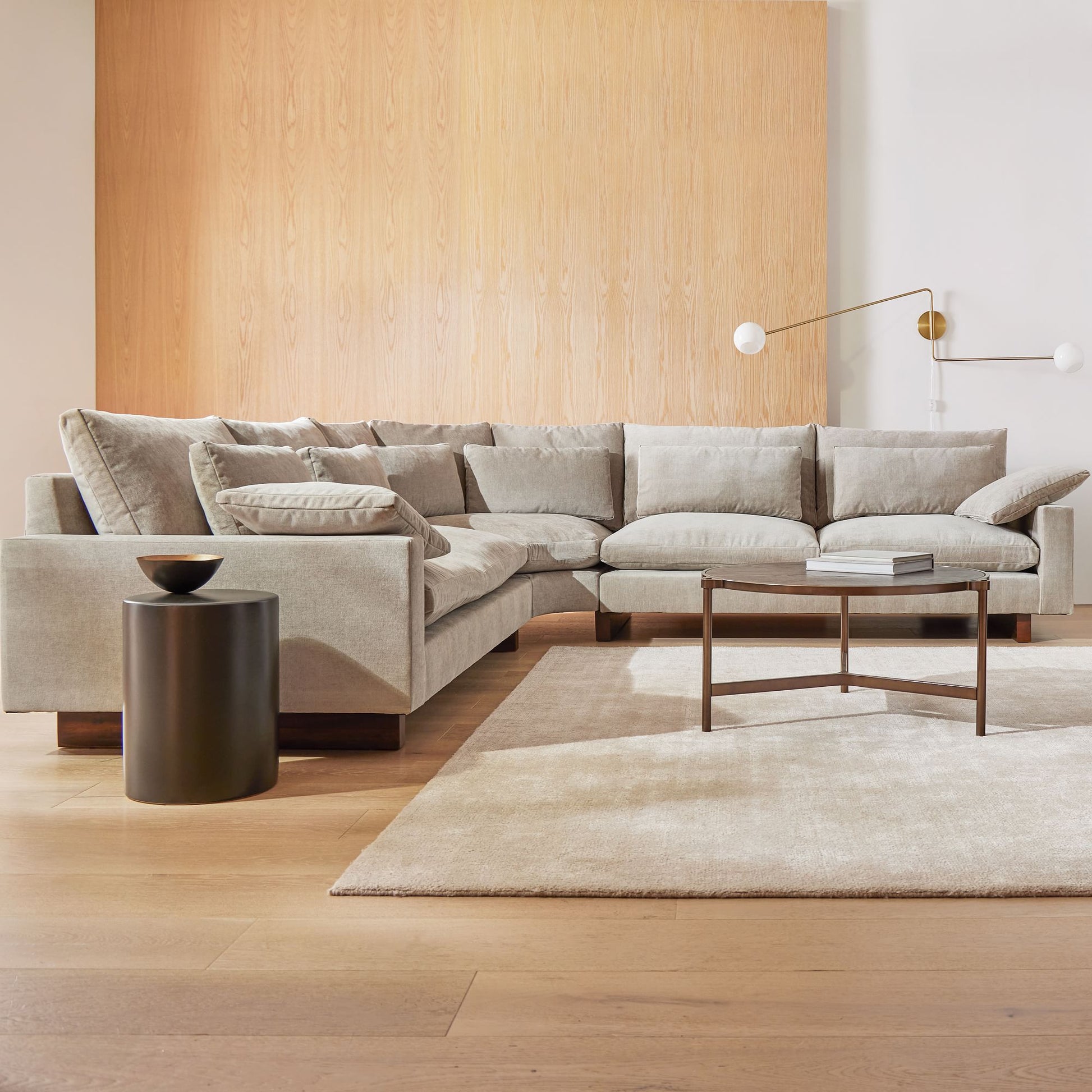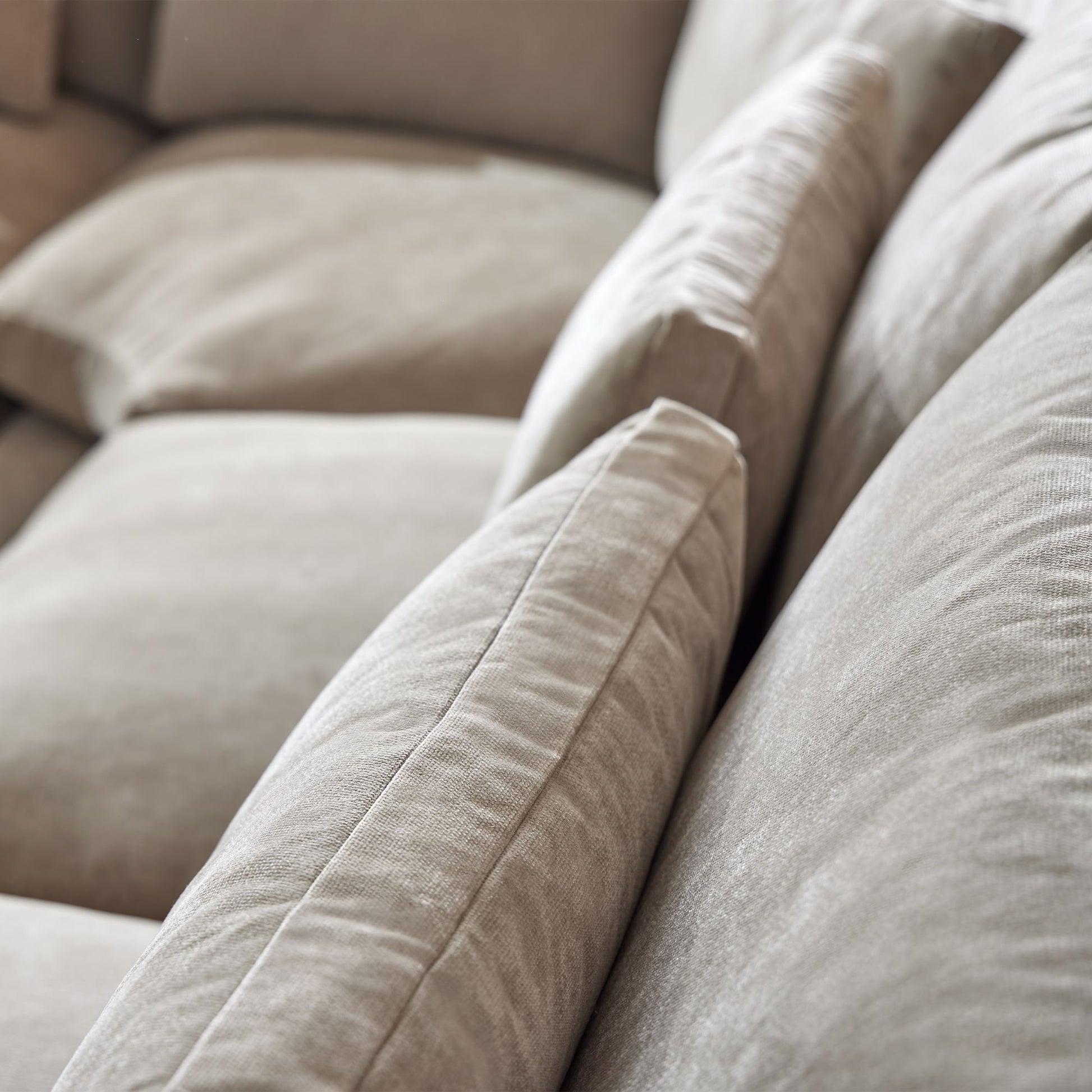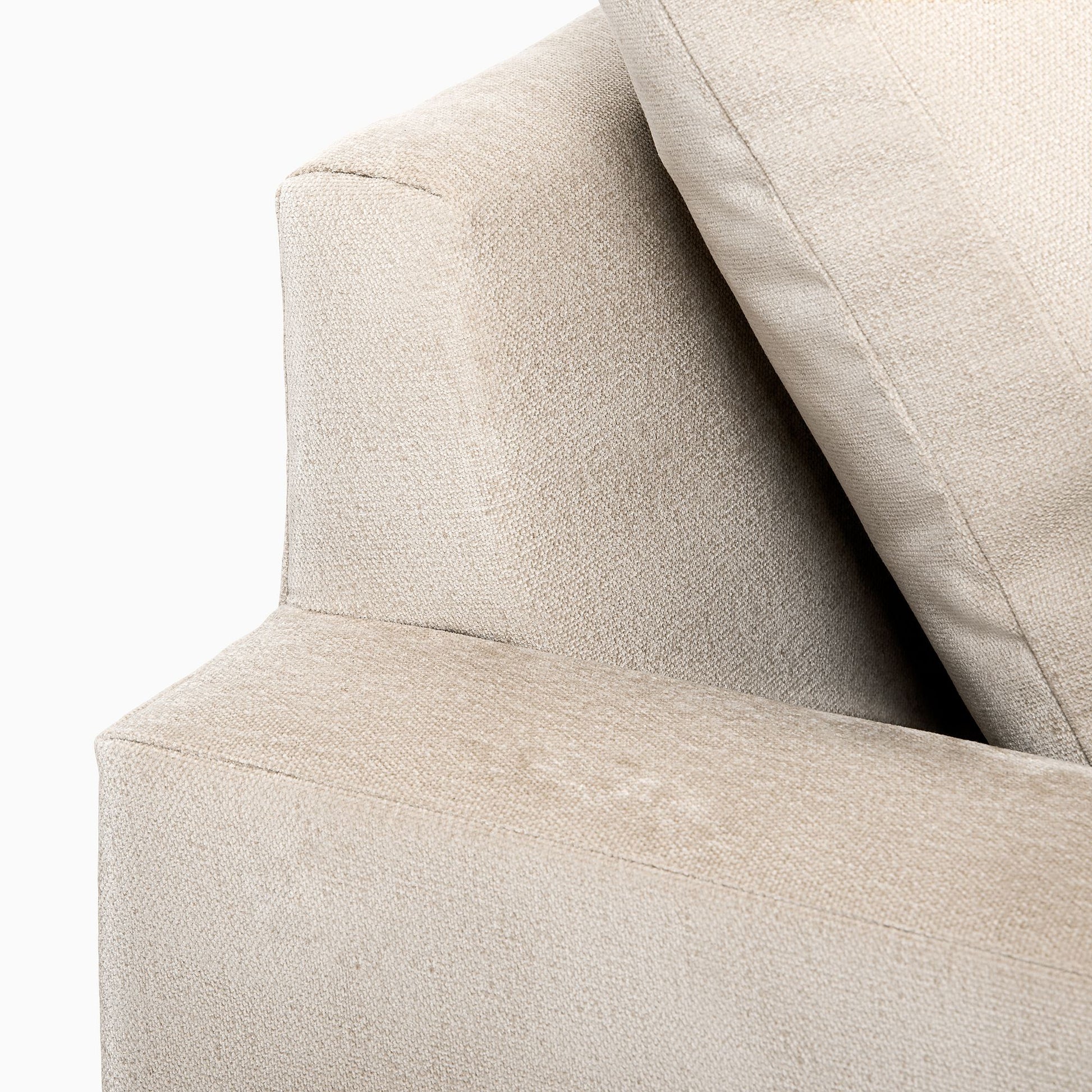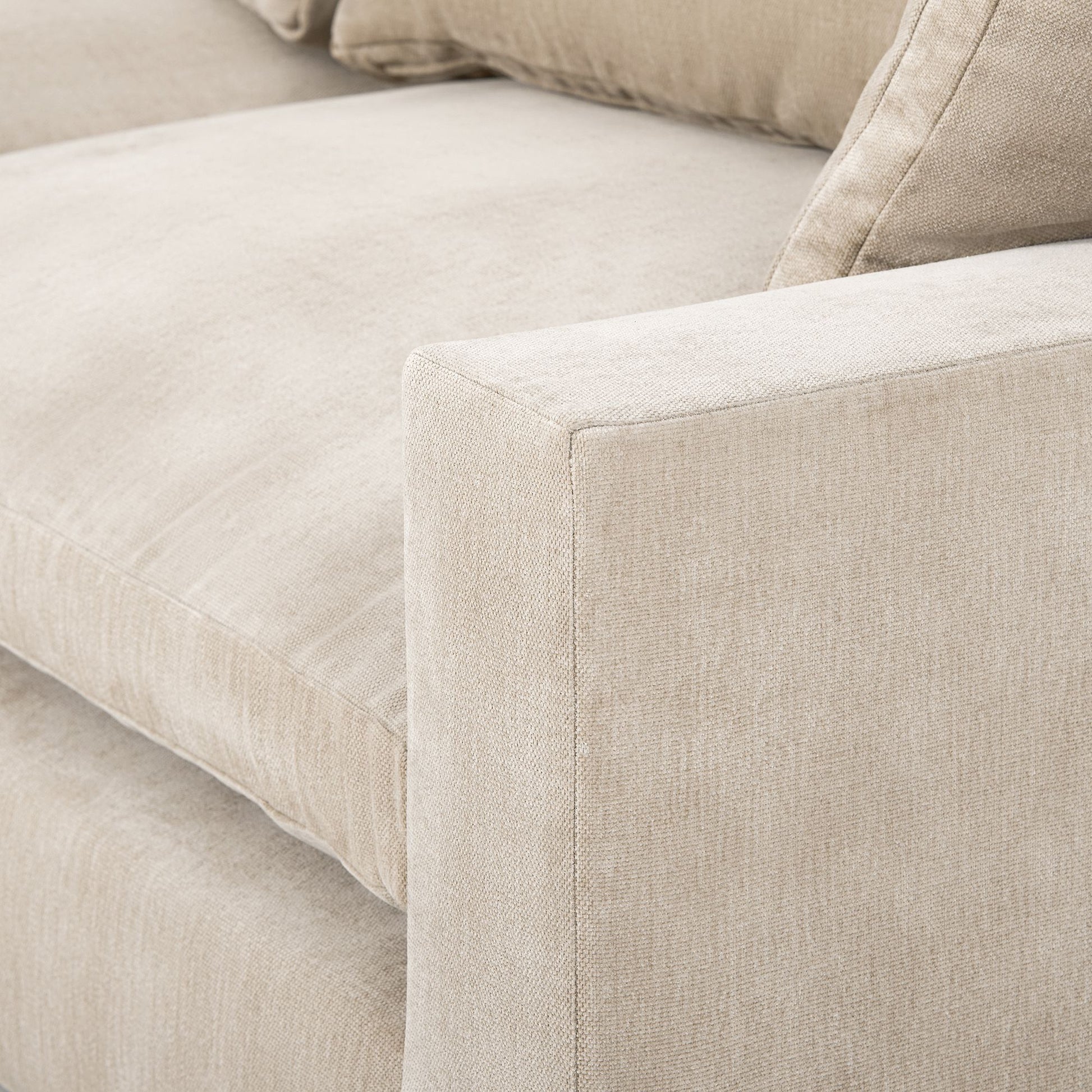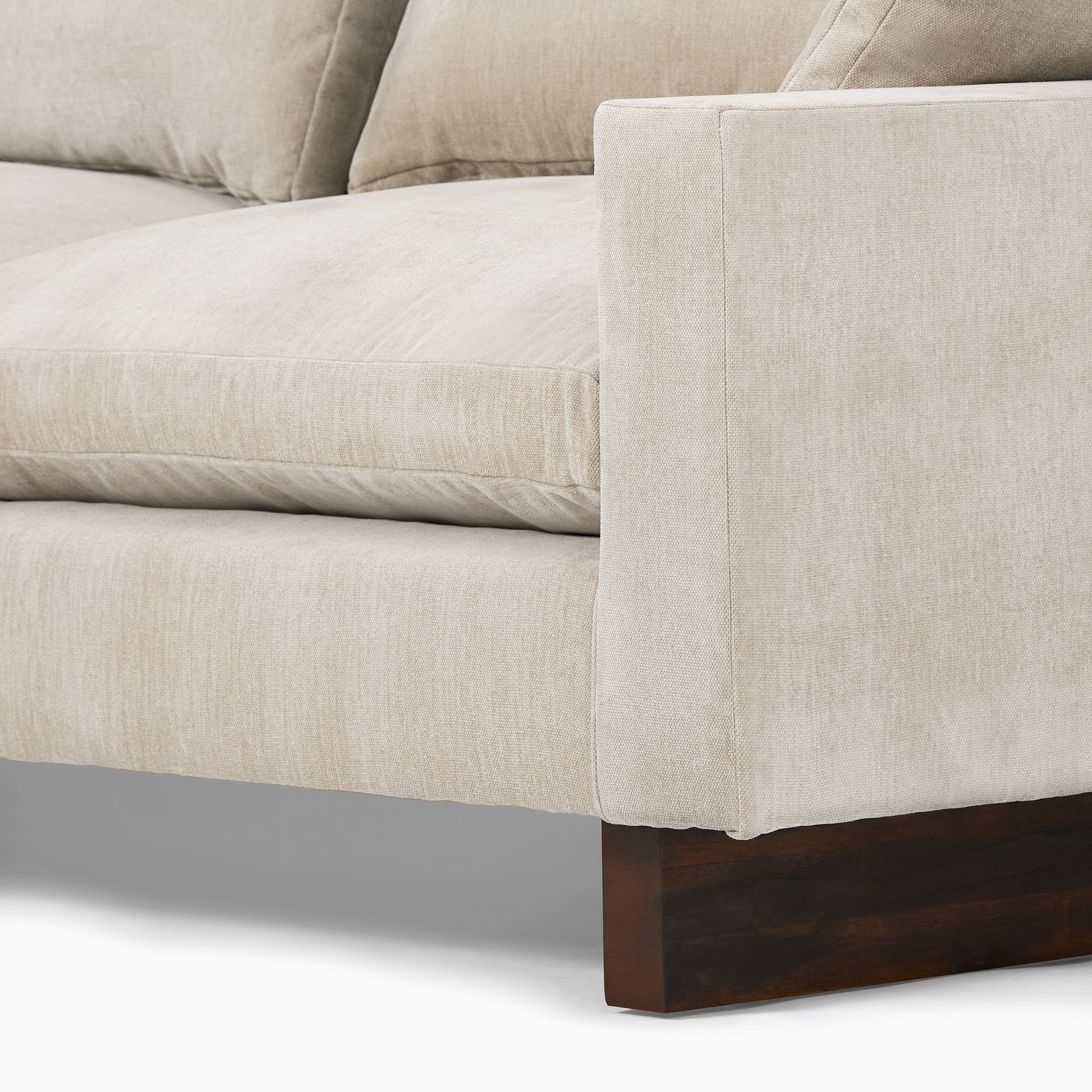 Introducing the Harmony Wedge sofa, expertly crafted with hand-built frames and hand-finished upholstery. Experience ultimate comfort and luxury in your living space. Elevate your home with the perfect combination of craftsmanship and style.