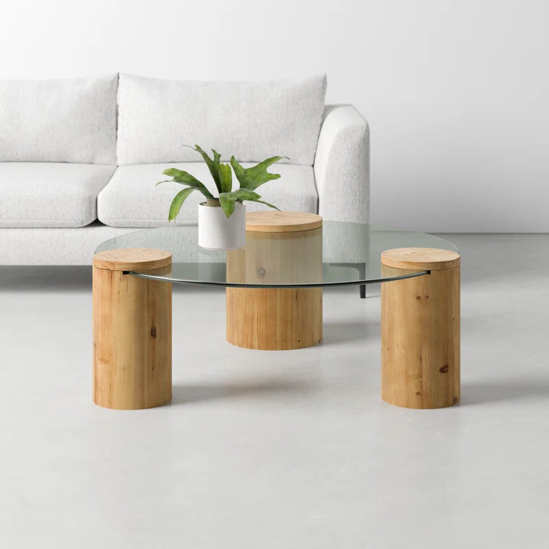 Elevate your living space with the Jether Coffee Table. Made from reclaimed pine wood, its natural finish highlights the unique grain patterns for a one-of-a-kind piece. A clear glass top adds a modern touch while showcasing the wood's beauty. With its wide surface area, this table is both functional and beautiful.