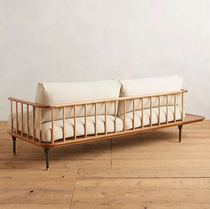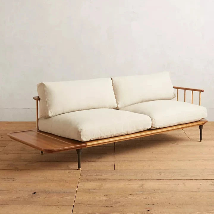 Experience the perfect combination of elegance and industrial style with our Kalmar Sofa. Crafted from smoked reclaimed wood with a rich finish, this sofa boasts a built-in side table and brass-capped legs for added functionality and beauty. Inspired by a hidden gem in Ho Chi Minh City, it's a must-have for any modern home.
