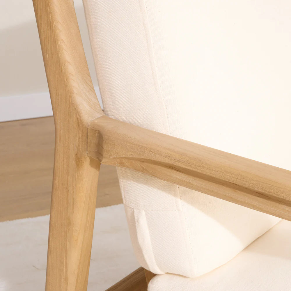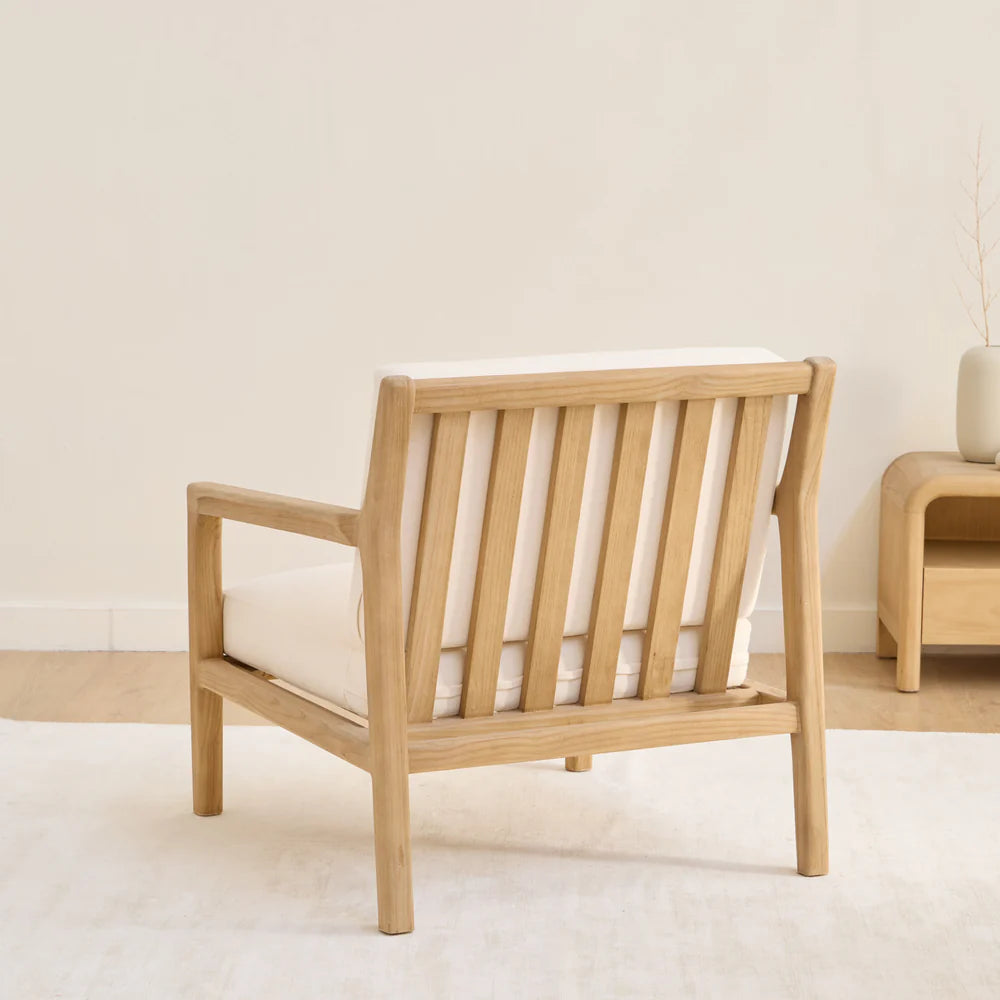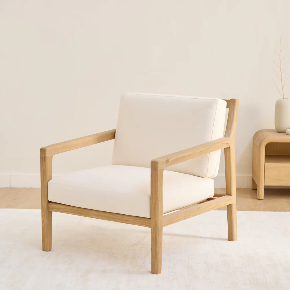 Introducing the Kiro armchair, crafted with Sungkai wood and cozy cotton-effect polyester. Make a statement in any warm-style space with this versatile accent piece. Ideal for entrance halls, living rooms, or bedrooms.