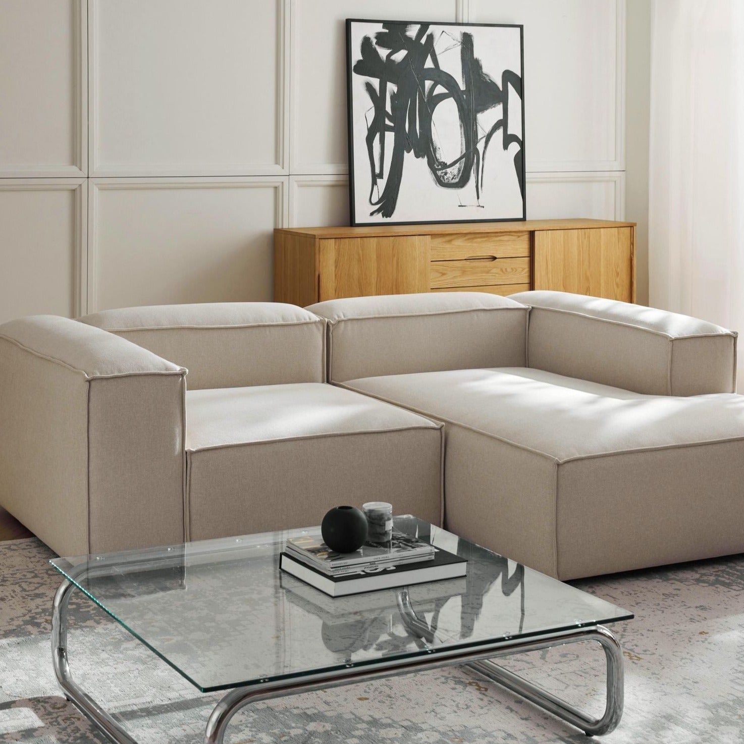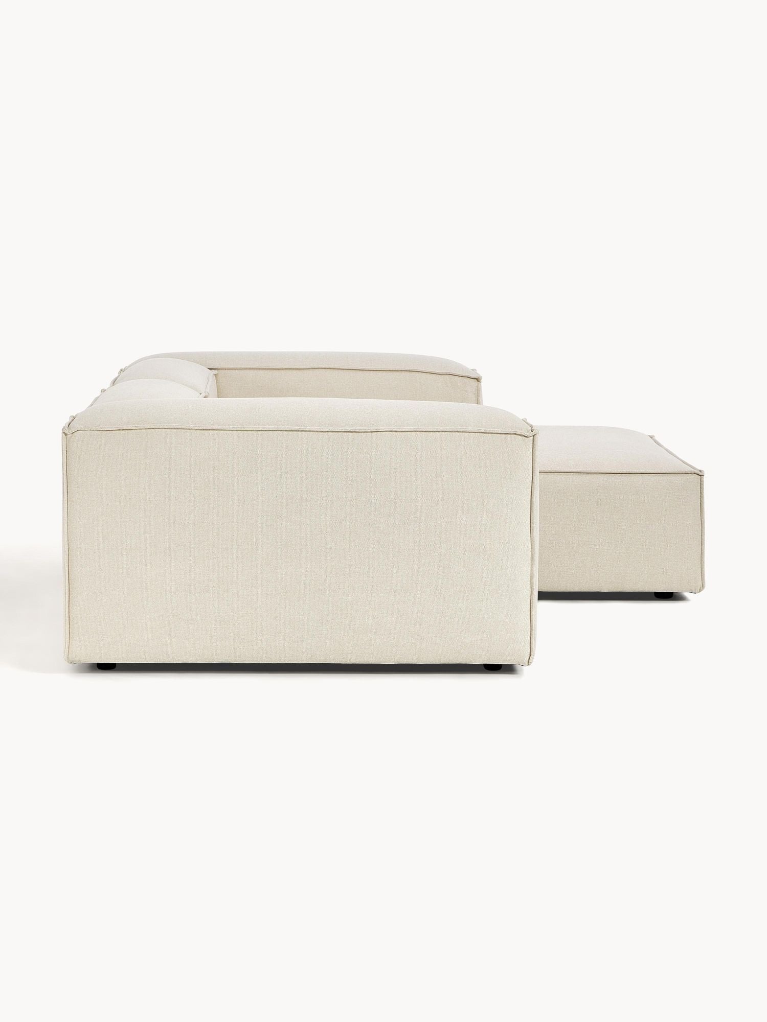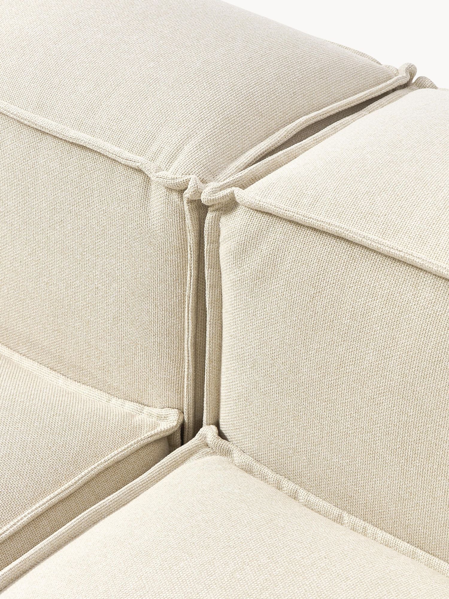 Our modular LENNON sofa series, available in various sizes and configurations, creates the perfect cozy island for relaxing at home. Featuring low armrests and backrests along with a soft, deep seat, it's ideal for lounging.