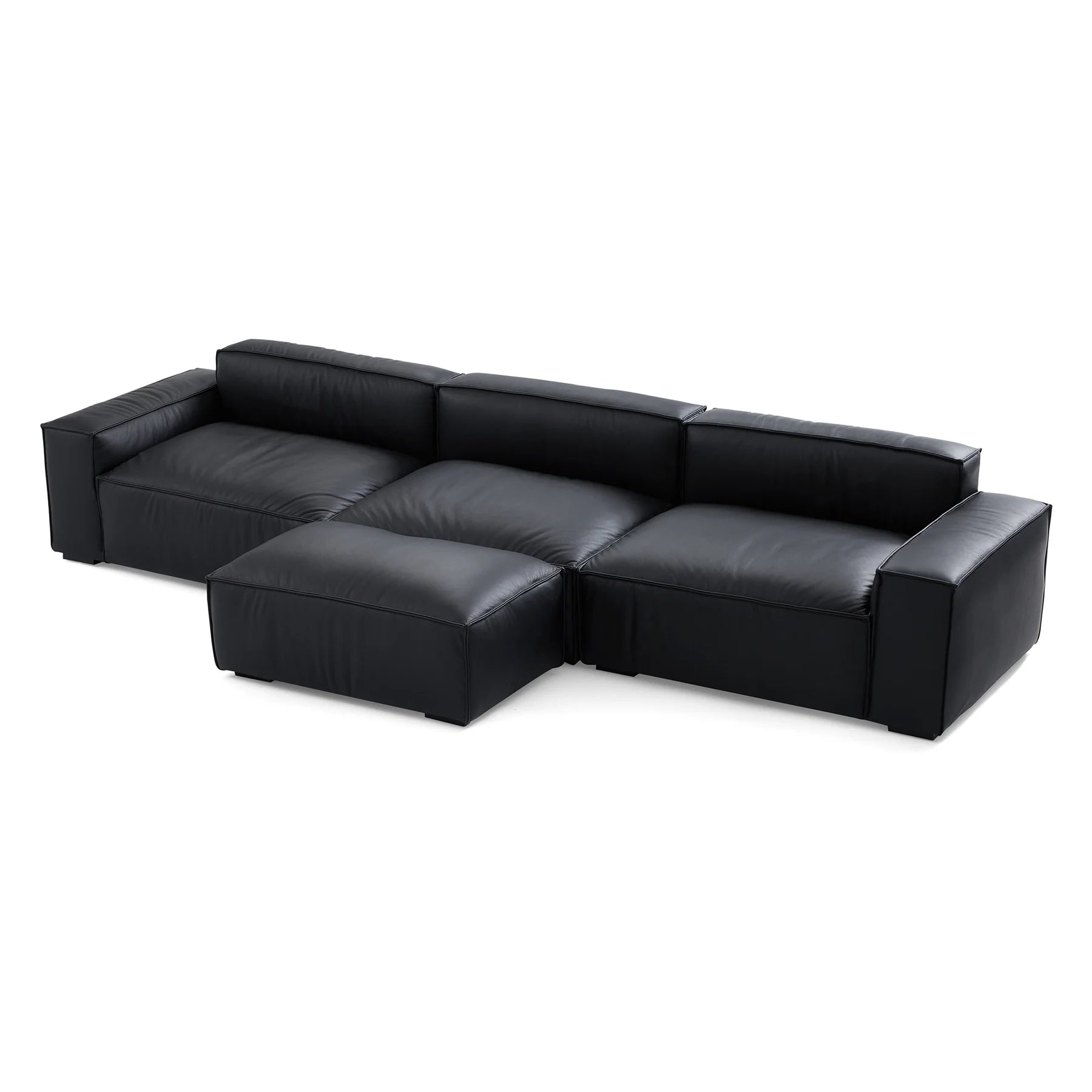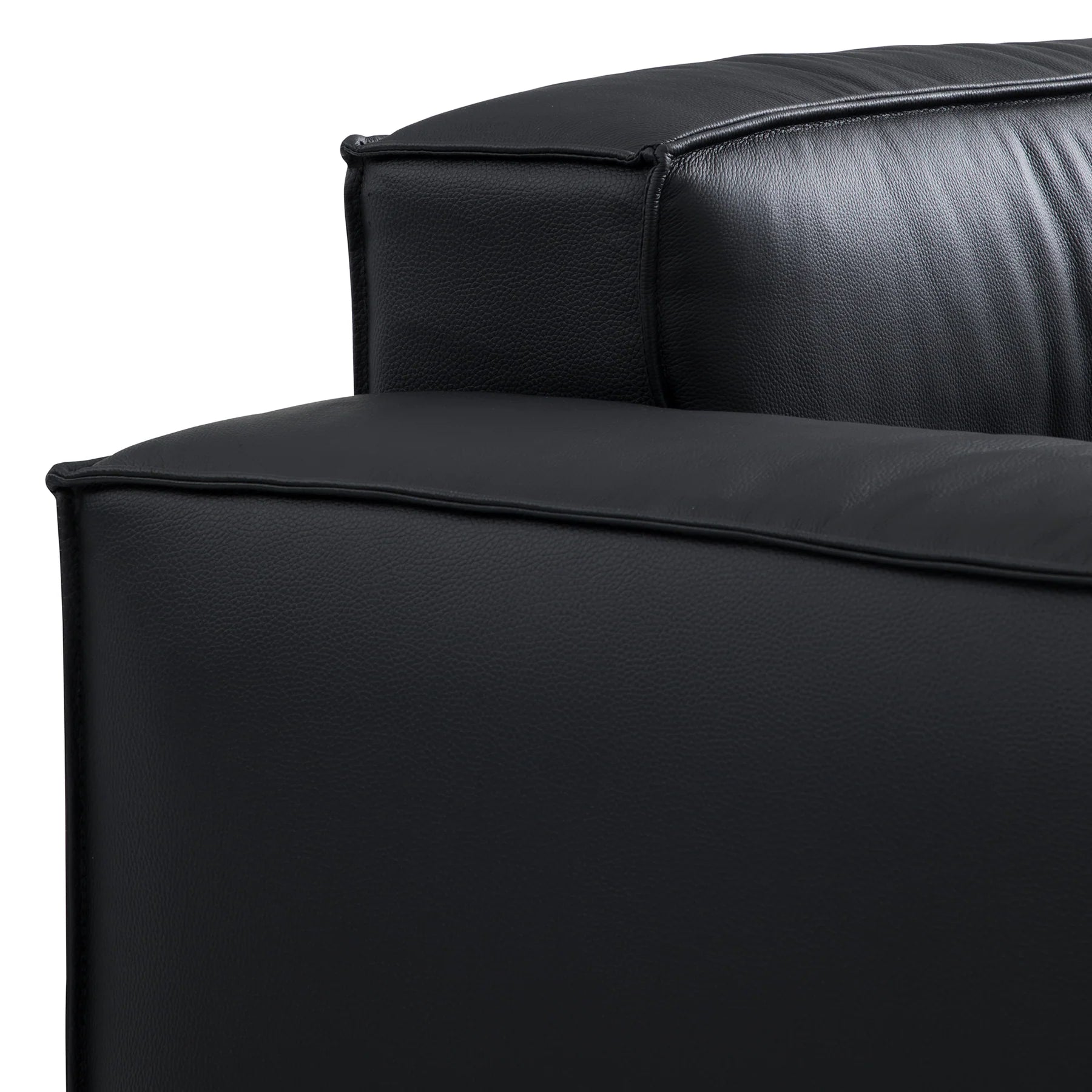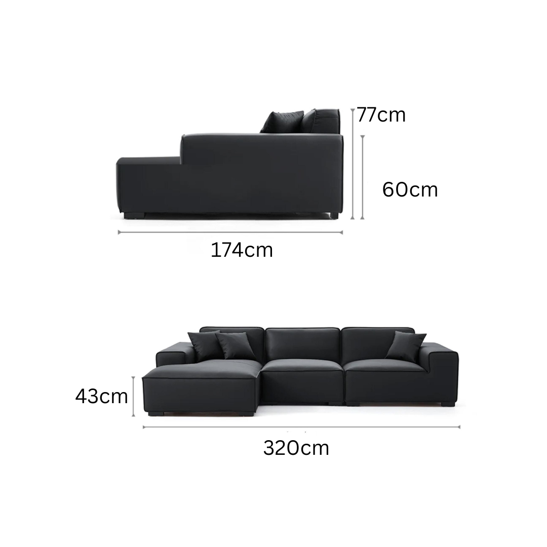 Elevate your living space with our luxury minimalist black leather sofa. The sleek and modern design, combined with the soft and comfy leather, makes this L shaped sofa the perfect addition to any home. Relax in style and comfort with this luxurious piece of furniture.