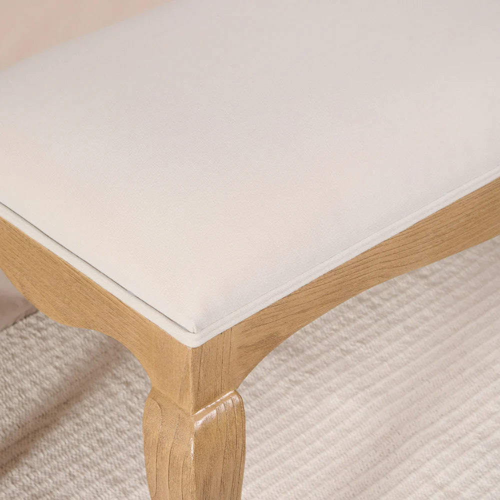 -Add a touch of warmth and character to your bedroom with the Mani Banquette. Crafted from natural Sungkai wood and finished in a rustic ecru, this unique bench offers both quality and style. Combine it with the rest of the collection for a cohesive and inviting look.