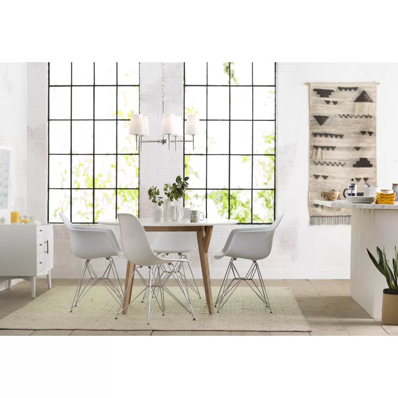 A stunning and modern chandelier will never go out of style. The piece contains five shades, made of fabric and a durable copper base coated with iron resulting in sophistication and elegance with silver Korean painting. This ceiling lamp with socket is without lamps.