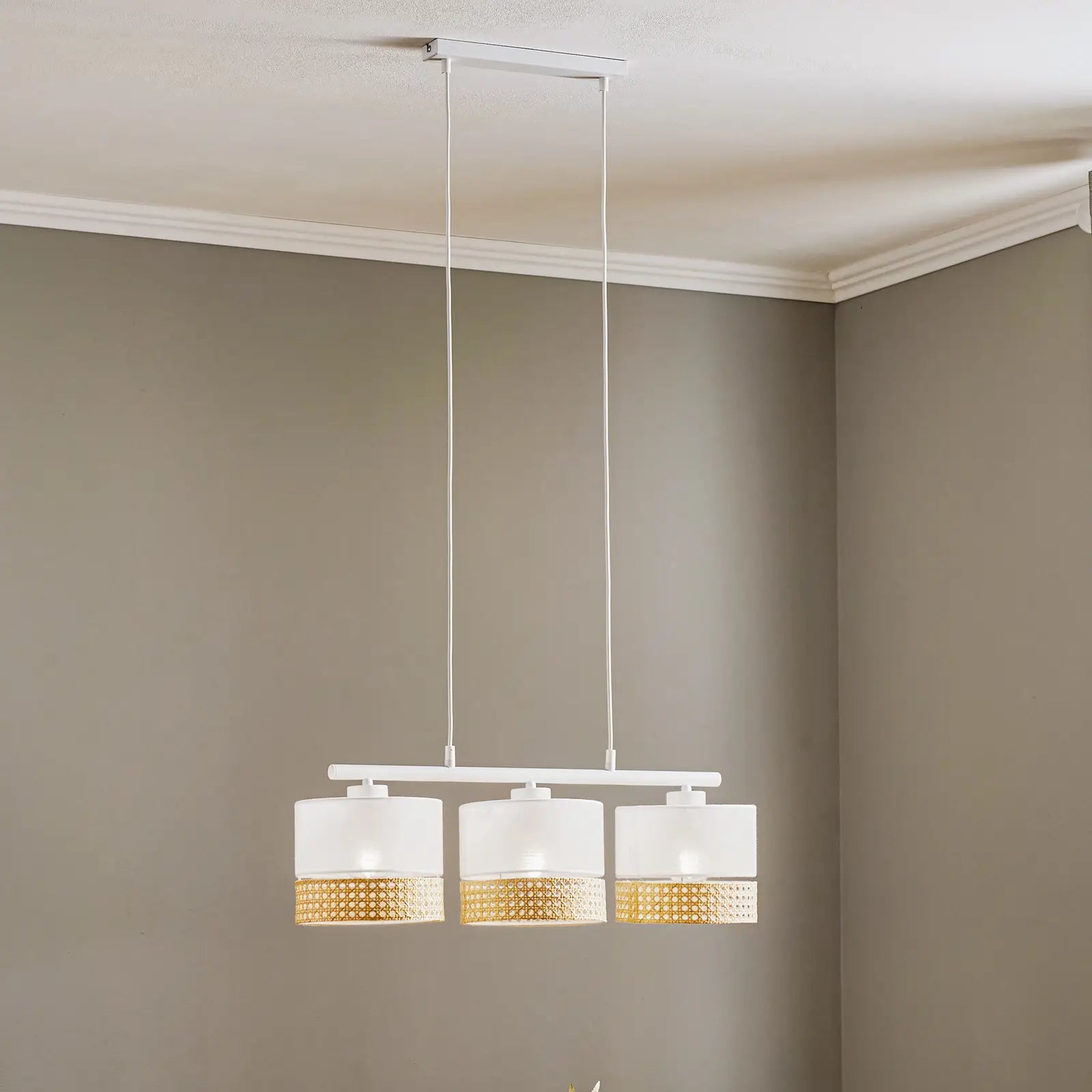 modern ceiling lamp. Made of Steel supported fabrics rattan with white electrostatic painting , It includes 1 sockets, but without lamps.