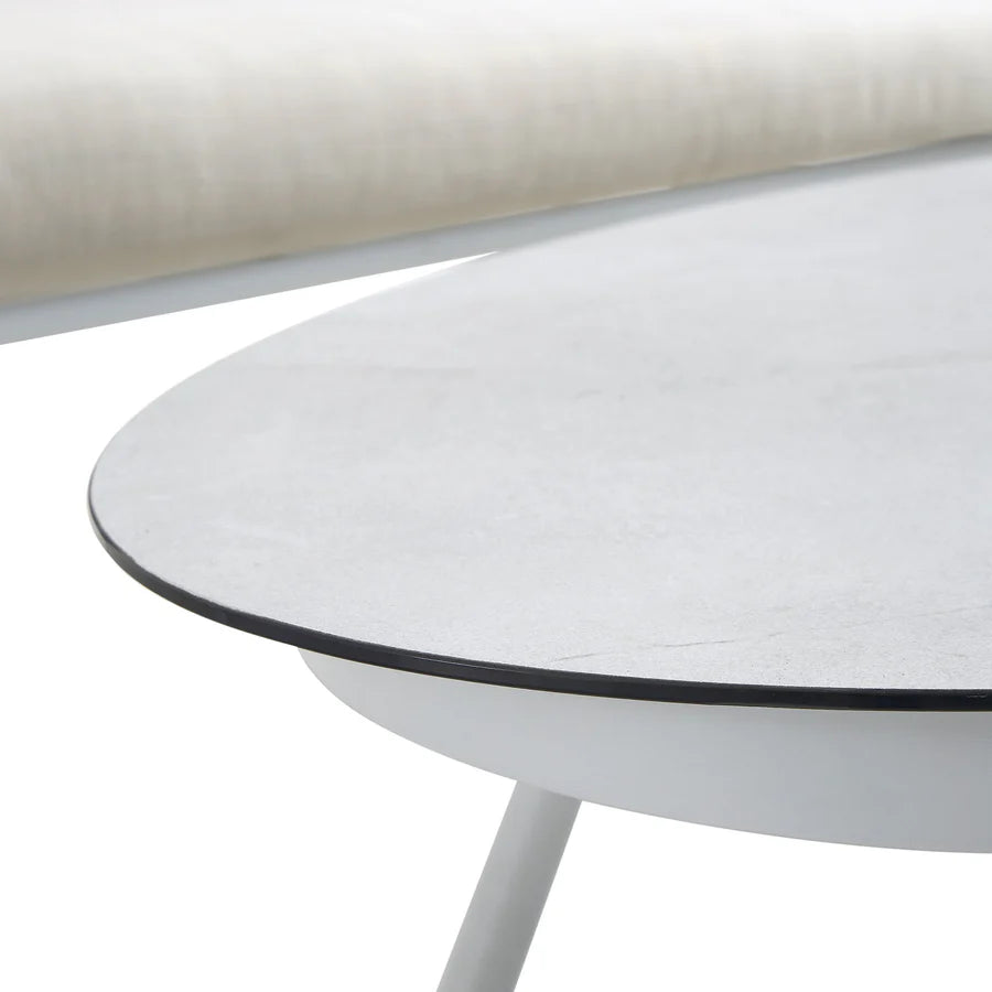 Elevate your outdoor space with our Montebello 4-Seater Outdoor Rope and Aluminium Sofa Set. Made with a rust-resistant aluminium frame and handwoven taupe rope, this set exudes durability and style. The deep-filled cushions in beige provide comfort, while the white ceramic coffee table adds a touch of elegance. With UV and water-resistant features, this set is perfect for any weather.