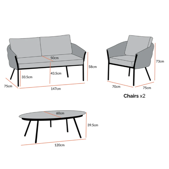 - Dimensions: 147cm W*75cm D*58cm H (sofa)