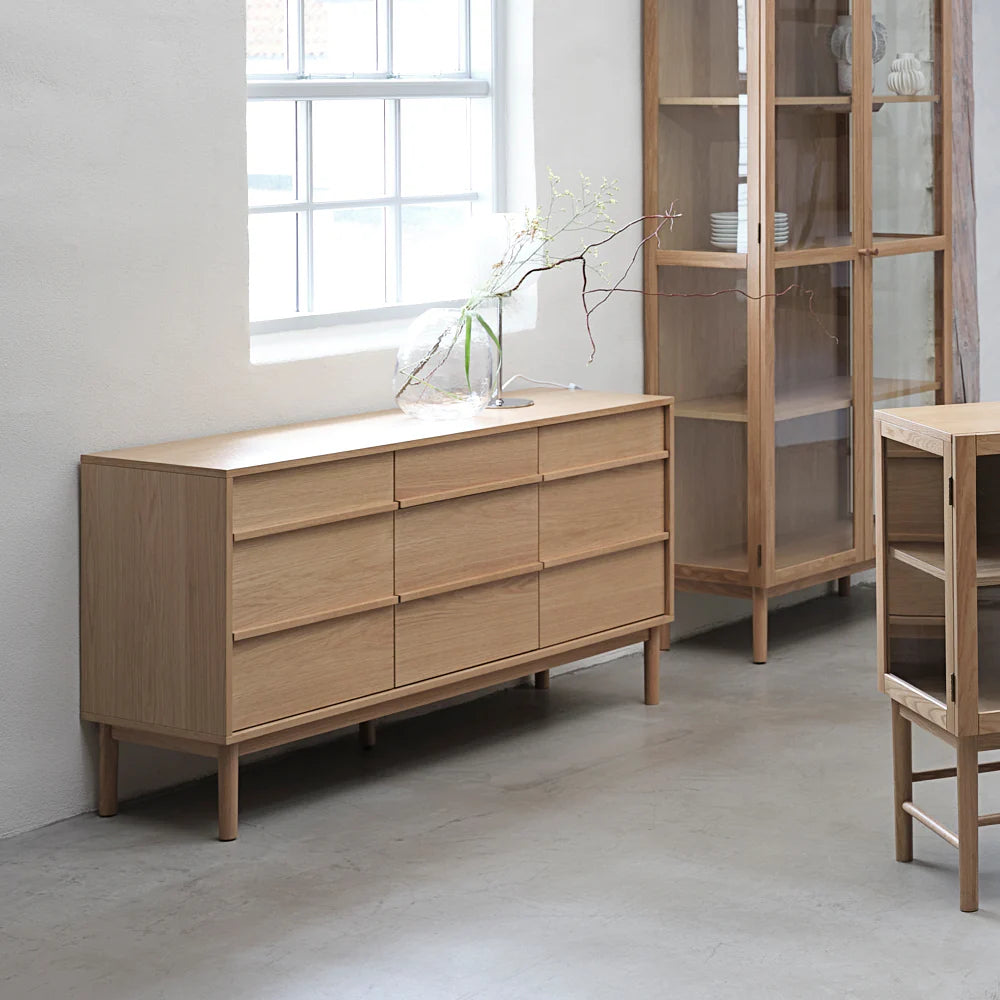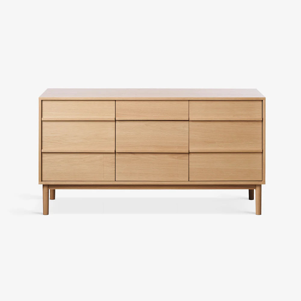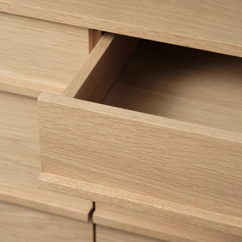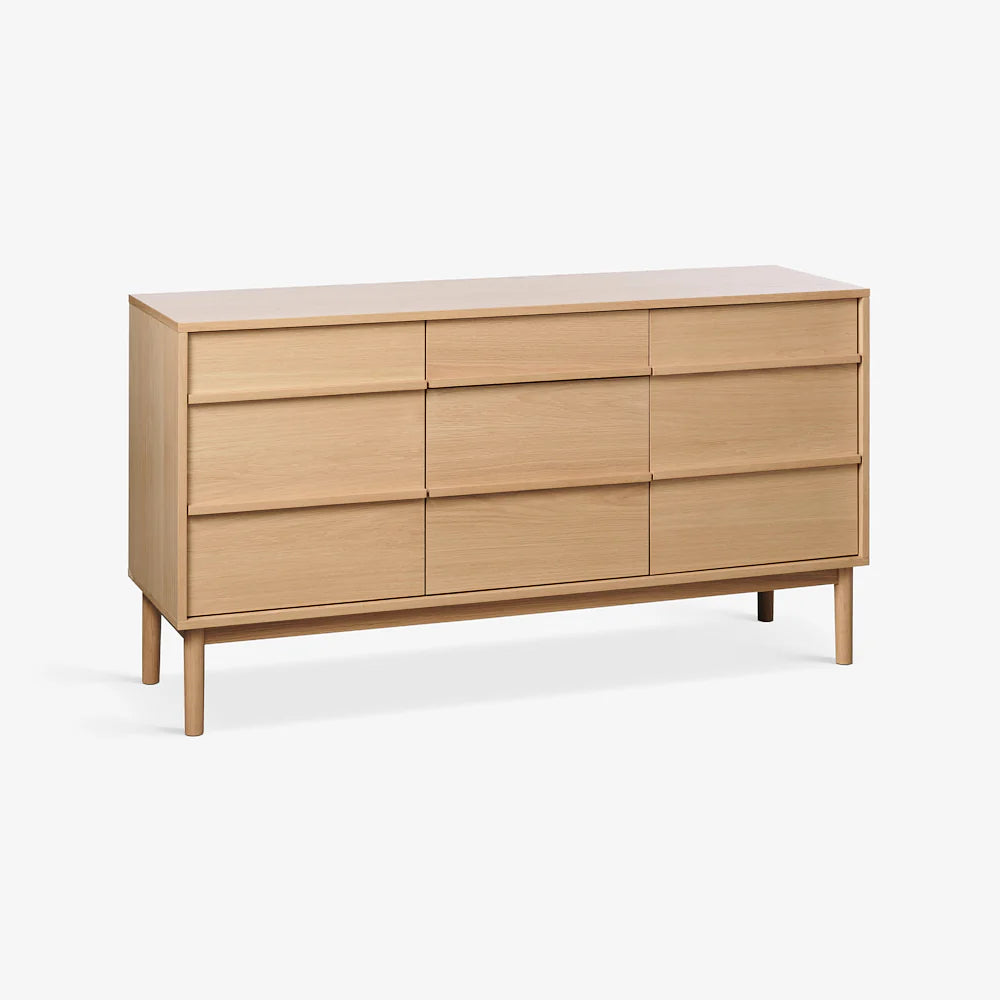 Introducing the Kai storage chest - a luxurious addition to any modern décor. Crafted with industrial wood and sleek oak veneer, this dresser boasts 3 spacious storage doors and a convenient single drawer, complete with elegant wooden handles. Solid wood legs ensure sturdiness for years to come. Elevate your space with the Kai.
