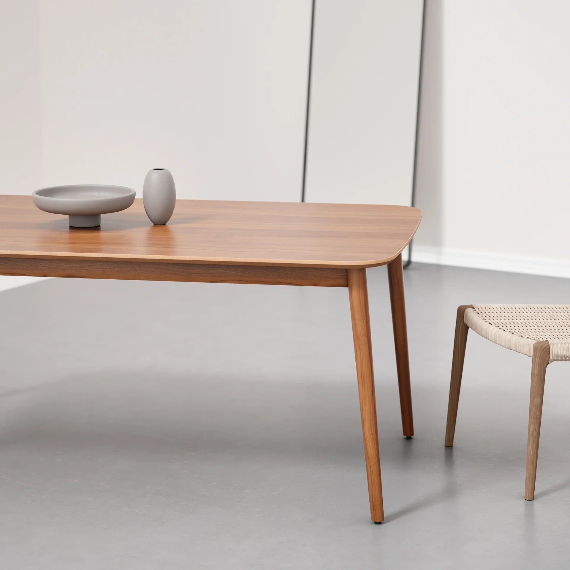 Indulge in the rustic elegance of our dining room table. Crafted with solid oak legs and an industrial wood plate covered in American walnut veneer, this premium piece exudes sophistication and luxury. Elevate your dining experience with this exclusive, one-of-a-kind table.