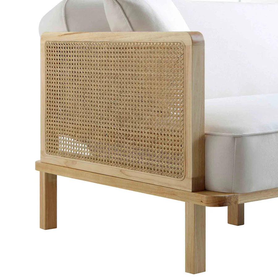 Experience breezy effortless style with the Pienza Cane Sofa Bed. Framed with beautiful natural cane and wood, this sofa is also upholstered in soft beige woven fabric for a sophisticated look. With a transformable design, it's perfect for accommodating family and friends, while its generous size makes it a functional and stylish addition to your living room.