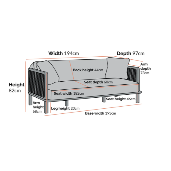 - Dimensions: W 194 x D 97 x H 82 cm.