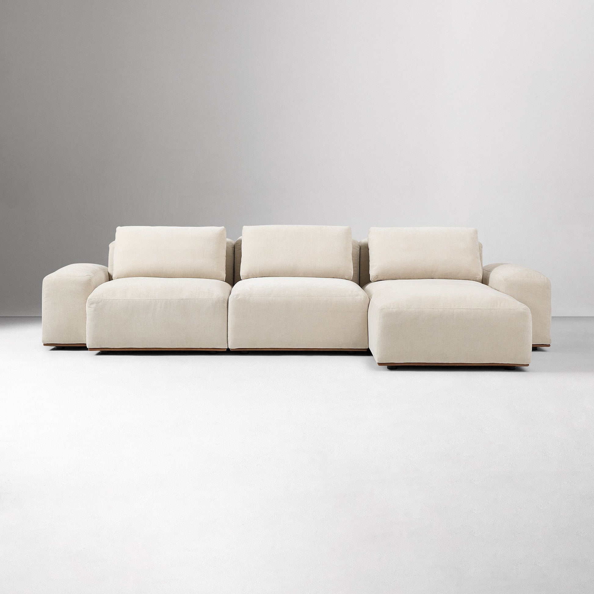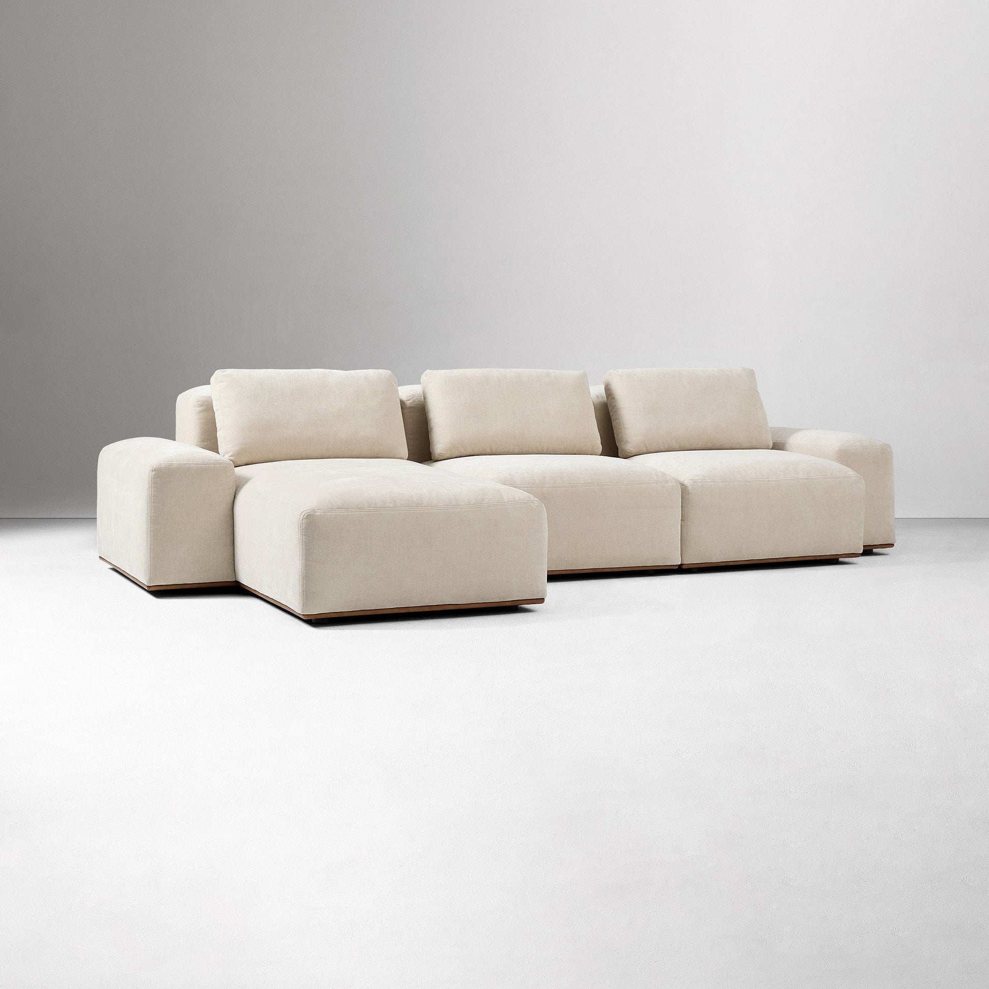 Transform your living space with the Quinten 3-Piece Chaise Sectional. Enjoy the comfort and durability of a bulk sofa and high sponge density, while adding a touch of elegance with its natural wood finish. Relax in style with the bubble sofa and sectional design.
