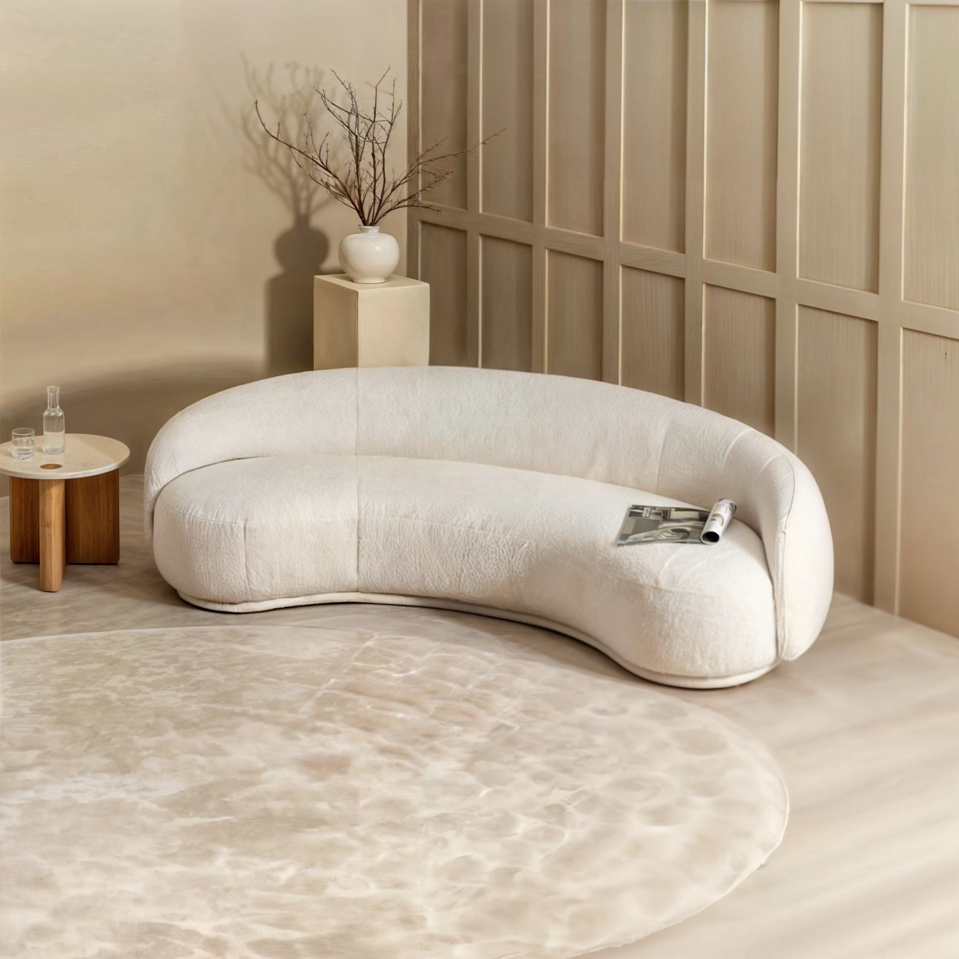 Introducing the savelle Modern Curved Sofa, the perfect blend of style and comfort. With its sleek design, this sofa brings a modern touch to any space. Its curved shape offers a cozy and inviting seating experience. Relax in style with this simple yet luxurious addition to your home.