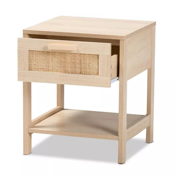 Introduce the Sebille end table into your home and elevate the style of any room. With a solid wood frame and natural rattan accents, this mid-century inspired piece is both attractive and versatile. Enjoy the convenience of a drawer for storage and an open shelf for larger items. Assembly required.