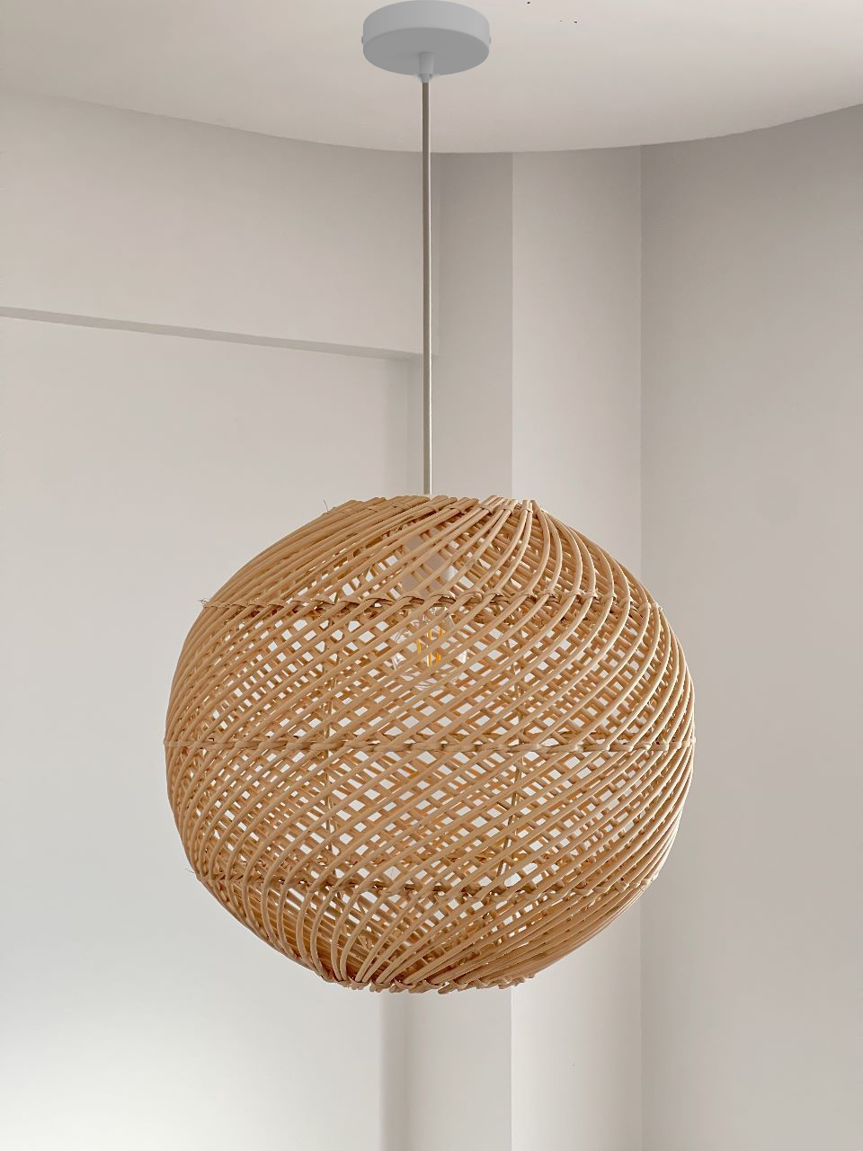 Lamps in rattan look great in a neutral bohemia setting. Actually, the bamboo Pendant looks brilliant in any setting. Whether you have a modern, bohemia, or romantic interior. Especially, this rattan lamp will soften a modern sleek décor and add vibrant personality to the room.