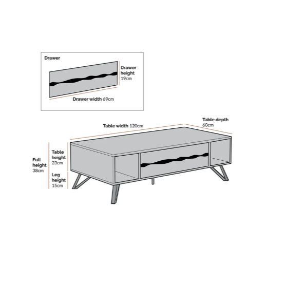 Elevate your living space with our Weston Oak Effect Coffee Table. Featuring two spacious shelves and a convenient drawer, this modern piece not only adds style but also provides storage for magazines and more. The sleek steel legs and curved drawer design add a touch of elegance.